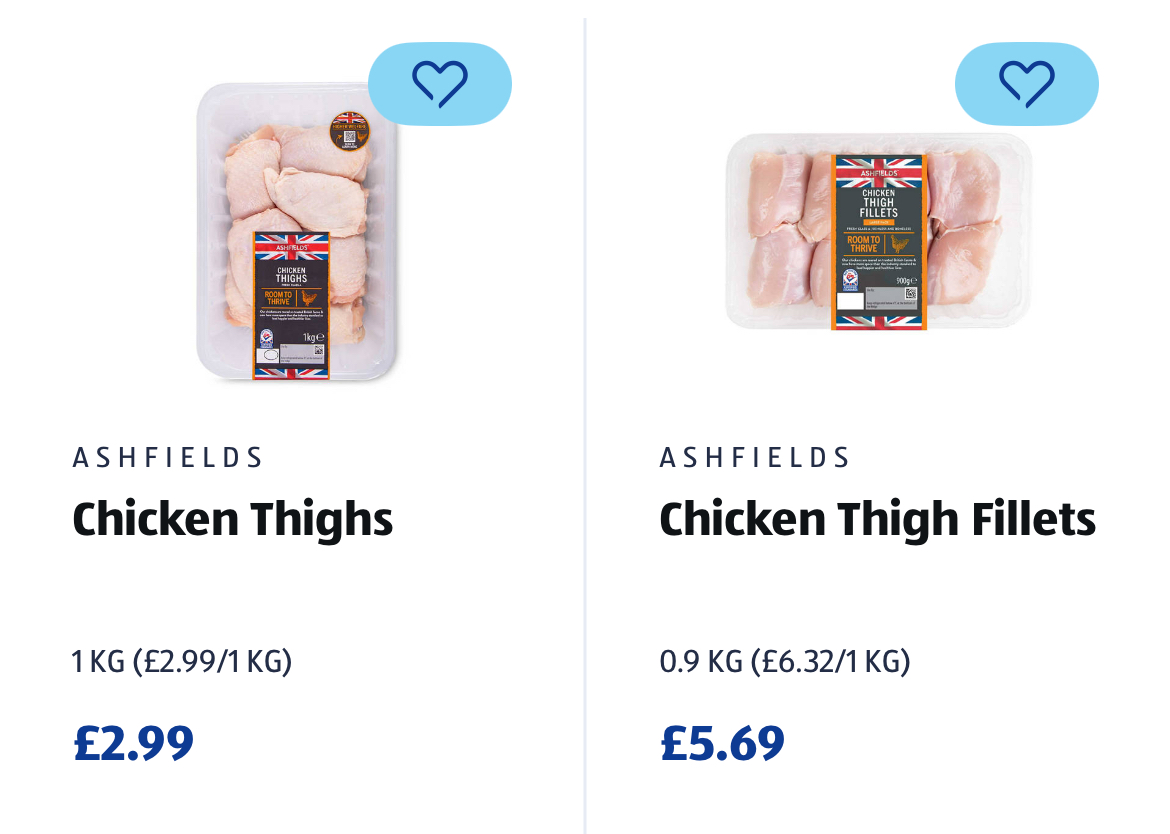 >>220762678yeah cause the packet of thigh fillets is 100% meat whereas the packet of thighs is meat + bones
