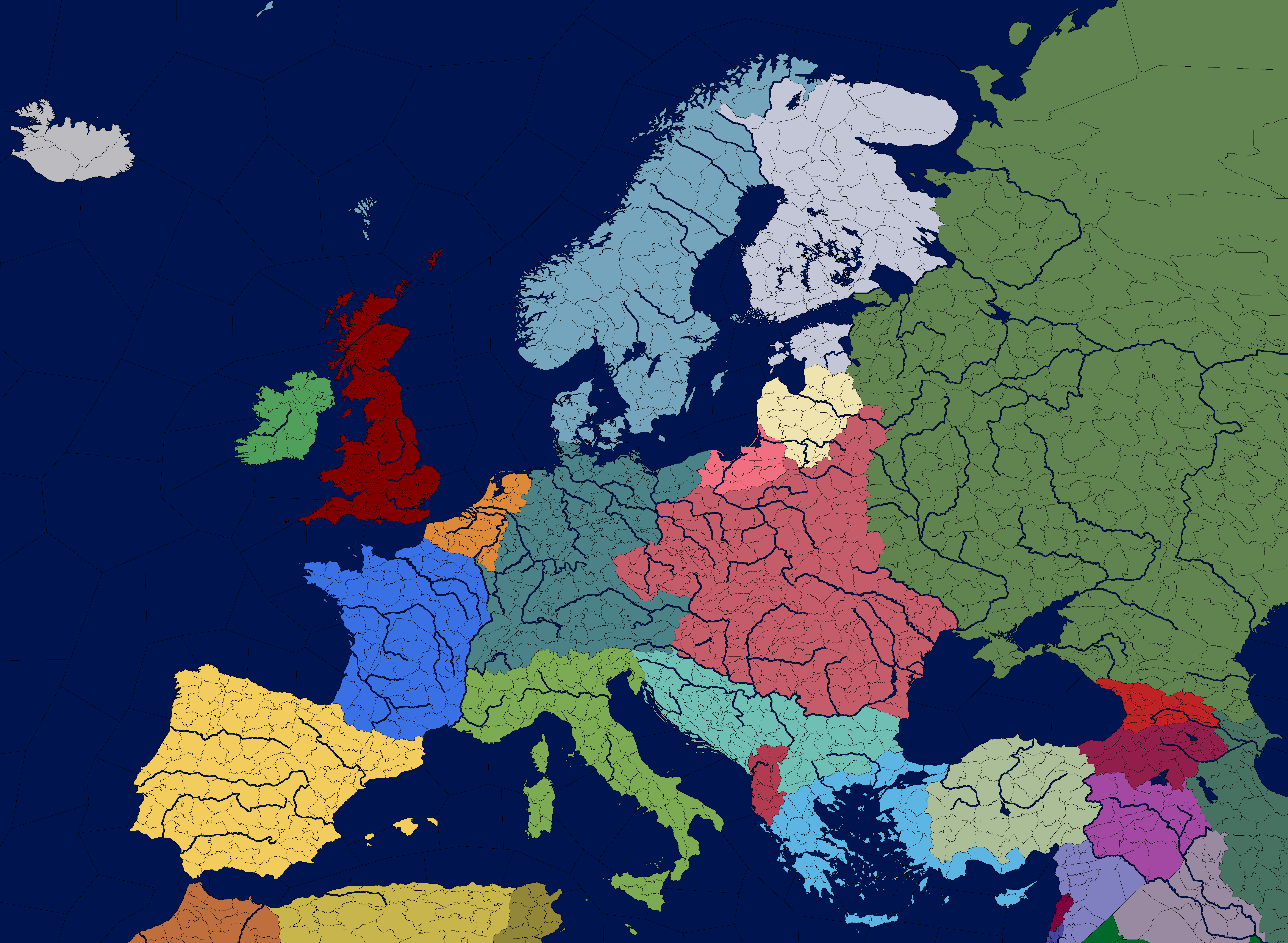 >>220777709I don't like merged Iberia. I say keep those uniquely elongated kingdoms, so cool...Italy extends too far west. It should have Corsica, though. Silesia and Prussia not being part of Germany is silly.Poland and Yugoslavia are way too big in general, split them up.Way too few independent states in the CaucasusI like the megale Idea!>>220778281I merge Norway, Orkney, Shetland, Faroes and Iceland.Scania goes back to Denmark, along with Gotland and maybe Ösel.Sweden gains back all of GroB Finland, which includes Kola, Karelia and Ingria. I never know whether to merge Estonia with Finland and thence Sweden.thoughts?>>220779886indeed, give it back Krain and Küstenland.