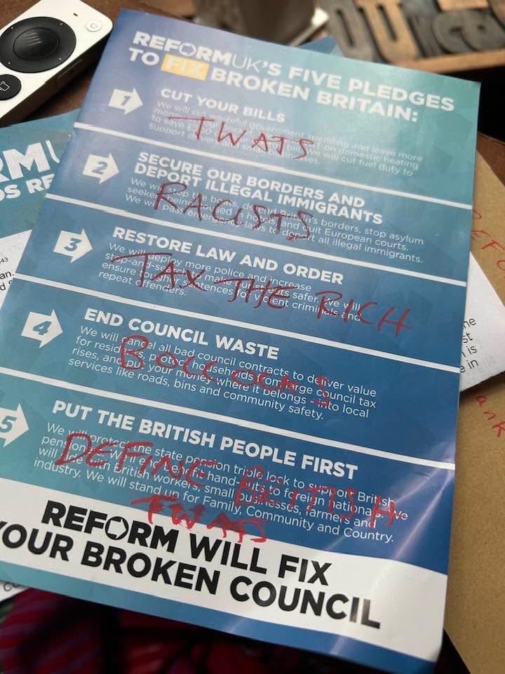 >>220778797You get a political leaflet through the door. Do you:A) bin itB) read it to become more informed, whether you agree with the ideas or notC) seize the opportunity to virtue signal on social mediaThe one you choose says a lot about you.