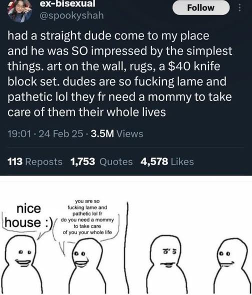 >>220781563women like this have their brains fucked by social mediaa sensible woman would be happy that a man liked her taste in interior decorating