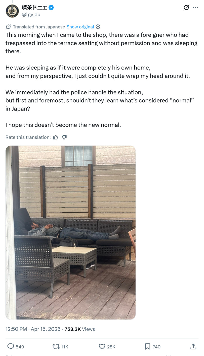 >>220782232>trespassed into the terrace seatingWhere is this though? It's a shop? Is it open air and he climbed that fence or how did he get "in"?