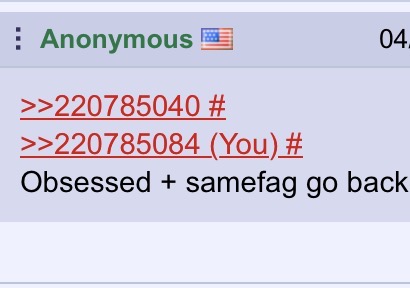 I cannot tell the american flags apart and imagine they're the same person fighting in my head. But that goes with most american flags in /int/.
