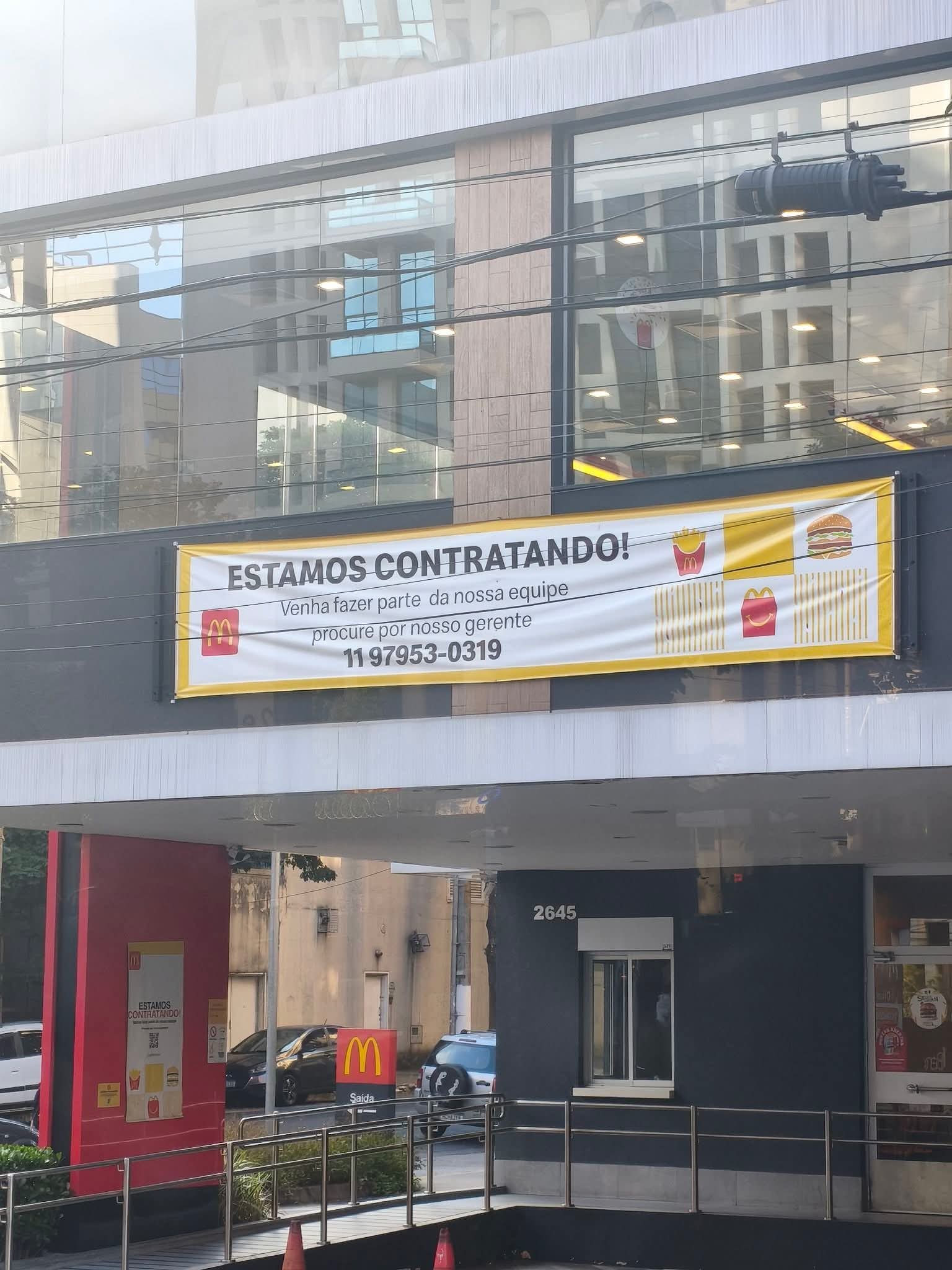 Que está acontecendo que ninguém quer mais trabalhar?Faz meses que está faixa está no Mac da Av Ibirapuera, acho que uns 4 meses, será que até os jovens recebem bolsa senpaiília, falta de mão de obra está assolando várias áreas, ninguém quer estudar, trabalhar como antigamente, que geração é essa?