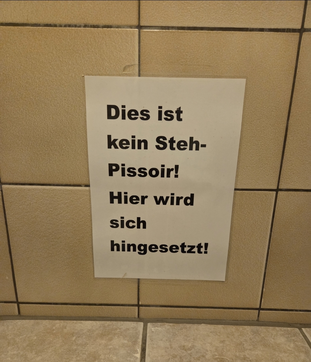 If there was a ever a sign telling me to piss sitting in public, then I'd piss on the seat out of spite(not really I'm conflict scared suedi).
