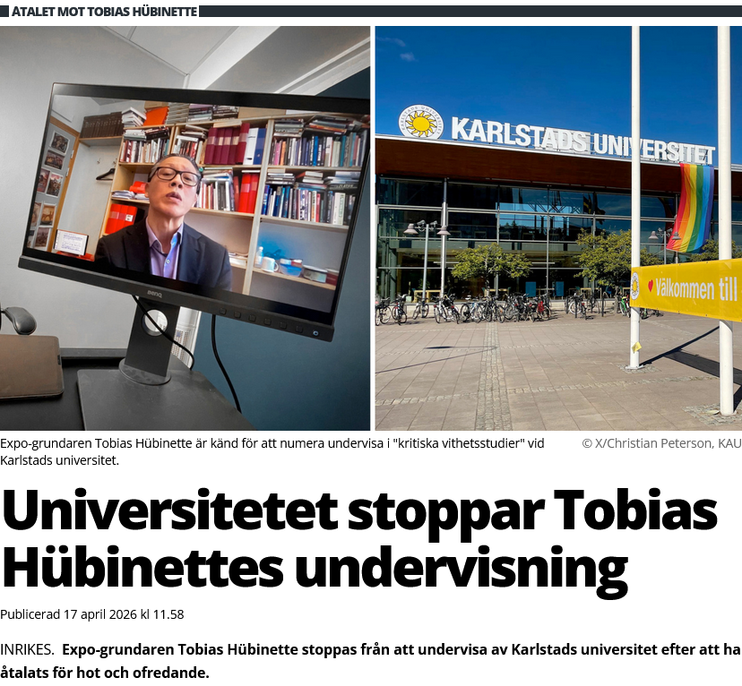 Bakgrunden är en rad hotfulla meddelanden han skickat till en kvinnlig vänsteraktivist som leder ett skattefinansierat integrationsprojekt samt till en man hon skaffat barn med.Hübinette kallar i chatten bland annat kvinnan för "jävla hora" och anklagar henne för att ha gjort honom till "porrmissbrukare".>"Nu ska ni alla lida och gå under era jävlar", lyder ett av meddelandena från Expo-grundaren.Han skriver också:>"Jag har dessutom en historia av att försöka lägga beslag på och ta andras barn – jag har betett mig så här tidigare mot sådana som er, det vill säga mot föräldrar som ni, och gått över gränsen…"