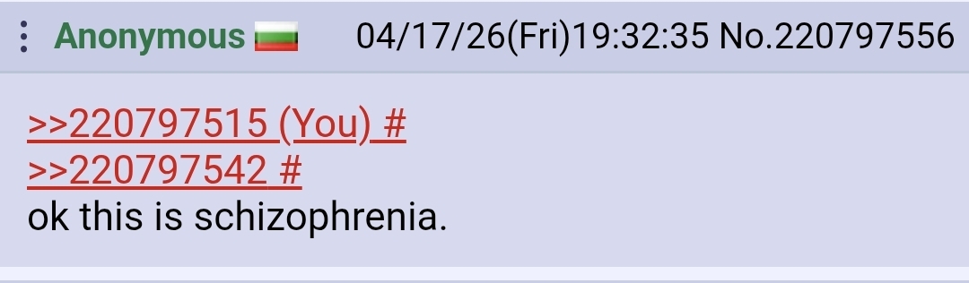 >>220797515>>220797542ok this is schizophrenia.