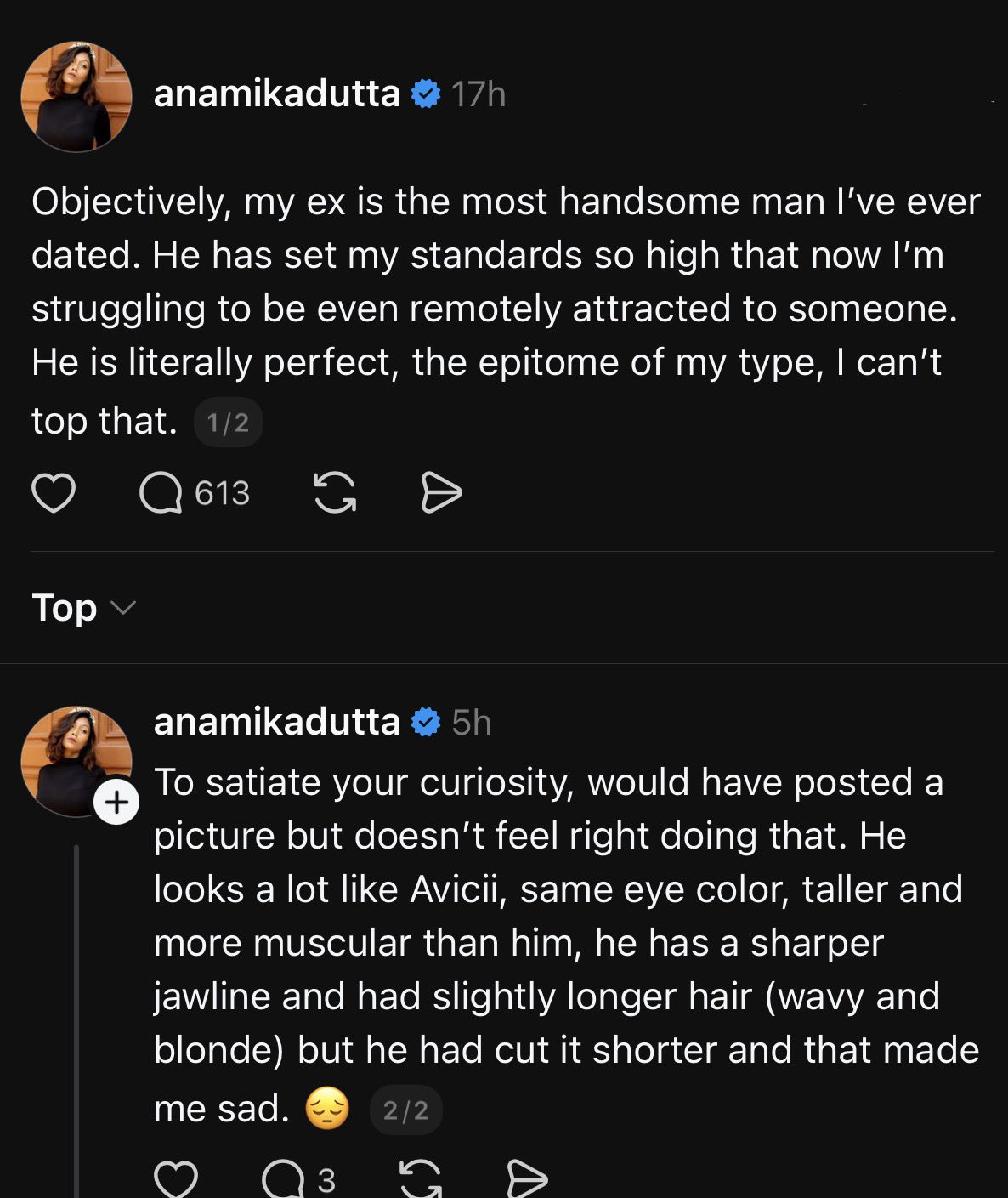 This women's entire account is literally just seething a t white men. Acting like anyone cares what this 3/10 miss Piggy bitch has to say