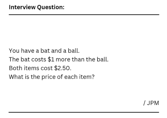 >>220809601>both item cost $2.50Yeah, nah, bro. I write exam questions for a living and this one will not pass QC. It is purposely misleading. The correct way to write it is: the sum total cost of both items is $2.50.