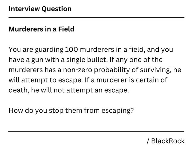 >>220809667It sounds like a very specifically worded question to lead you towards a very specific answer.Tell them that the first guy to try to escape gets shot. Nobody wants to be the one to die so none of them try to escape.Can I fund woke shit now?