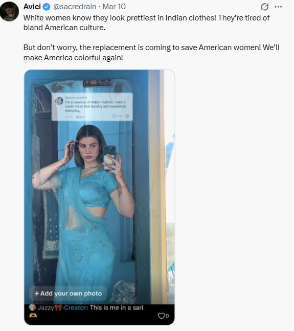 Do white women wear ethnic attire like lehengas and bantu knots better than even the ethnicities that own them? Or is cultural appropriation never /fa/?