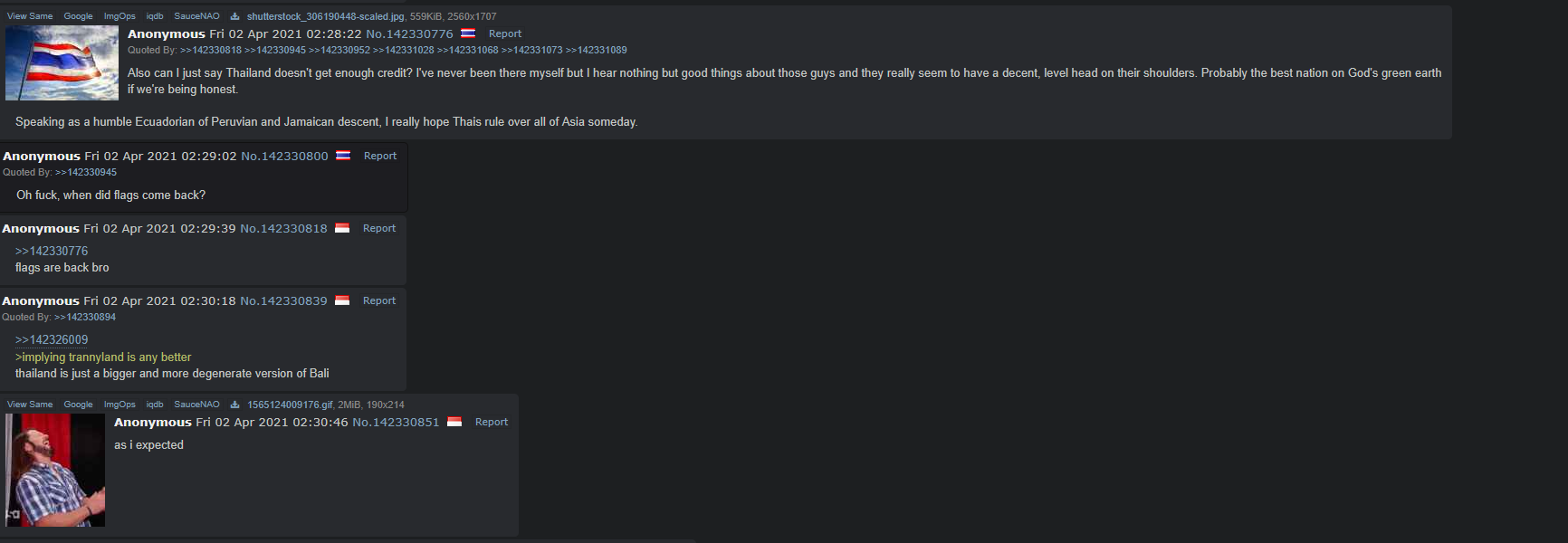 Just came back from here and I already wanna go back. Like it's not perfect (hot af and lot of tourists and traffic in some places) but for the most part it mogs my country in everything except the obvious (military spending and obesity etc). The people are nicer, public transportation is actually clean and efficient, the food is better, everything is more affordable, including healthcare, a lot of the cars are electric now and I never felt unsafe no matter where I went or how late it was. They are just less bitter and hostile all around and for some reason their internet speeds are faster than like 99.999% of my home state (Wyoming) even when I'm out in the fucking islands. I didn't even fuck any ladyboys, outside the tourist traps you barely see any and people are always outside doing activities and shit. And they somehow (mostly) kept it from turning into a wild west of sexpats and backpackers. I saw a group of jeets trying to get in an argument with a restaurant about the tab and within like minutes the cops show up and the saars start getting on their knees and apologizing or I guess praying or something. Seriously, why are Thais so based?