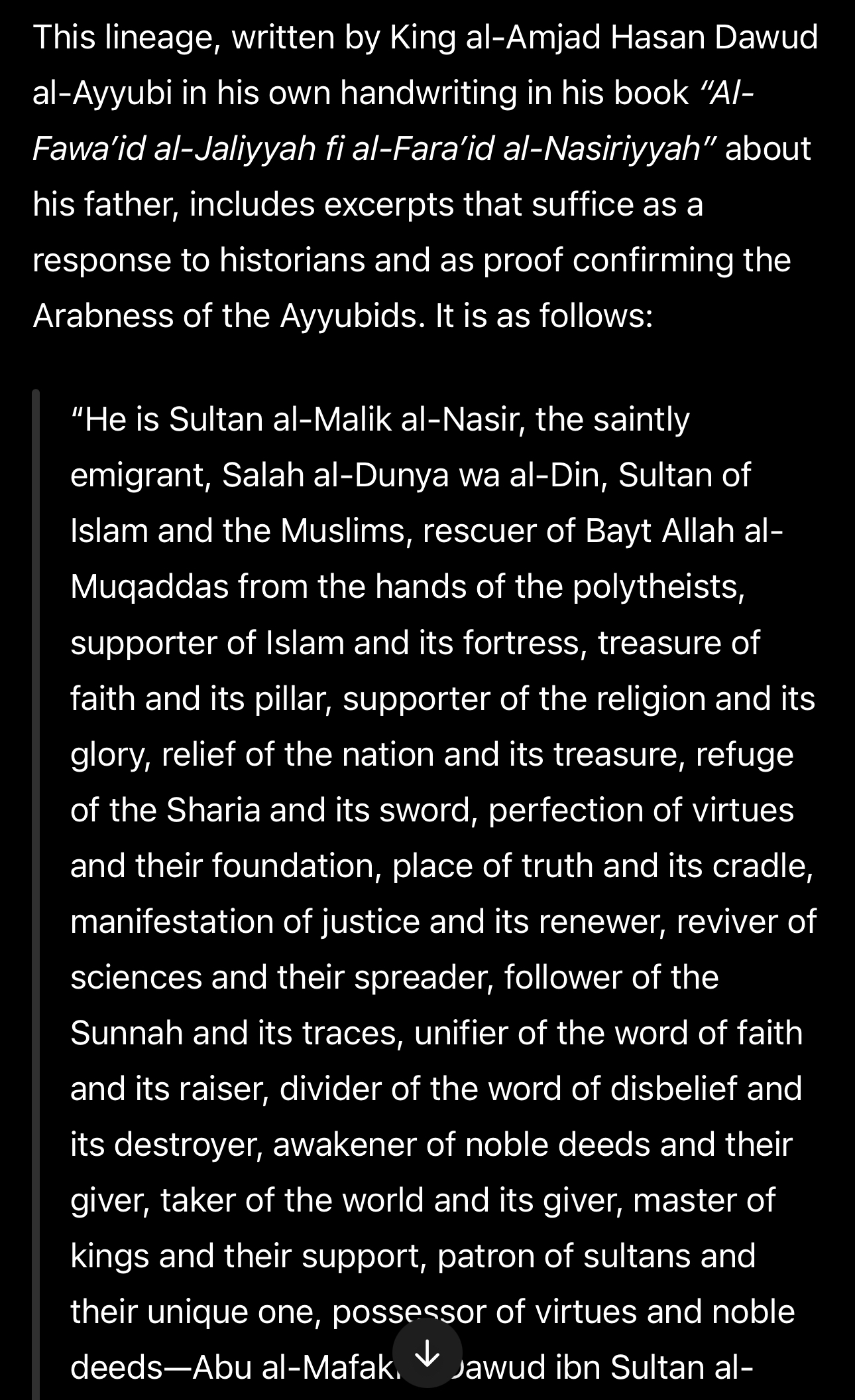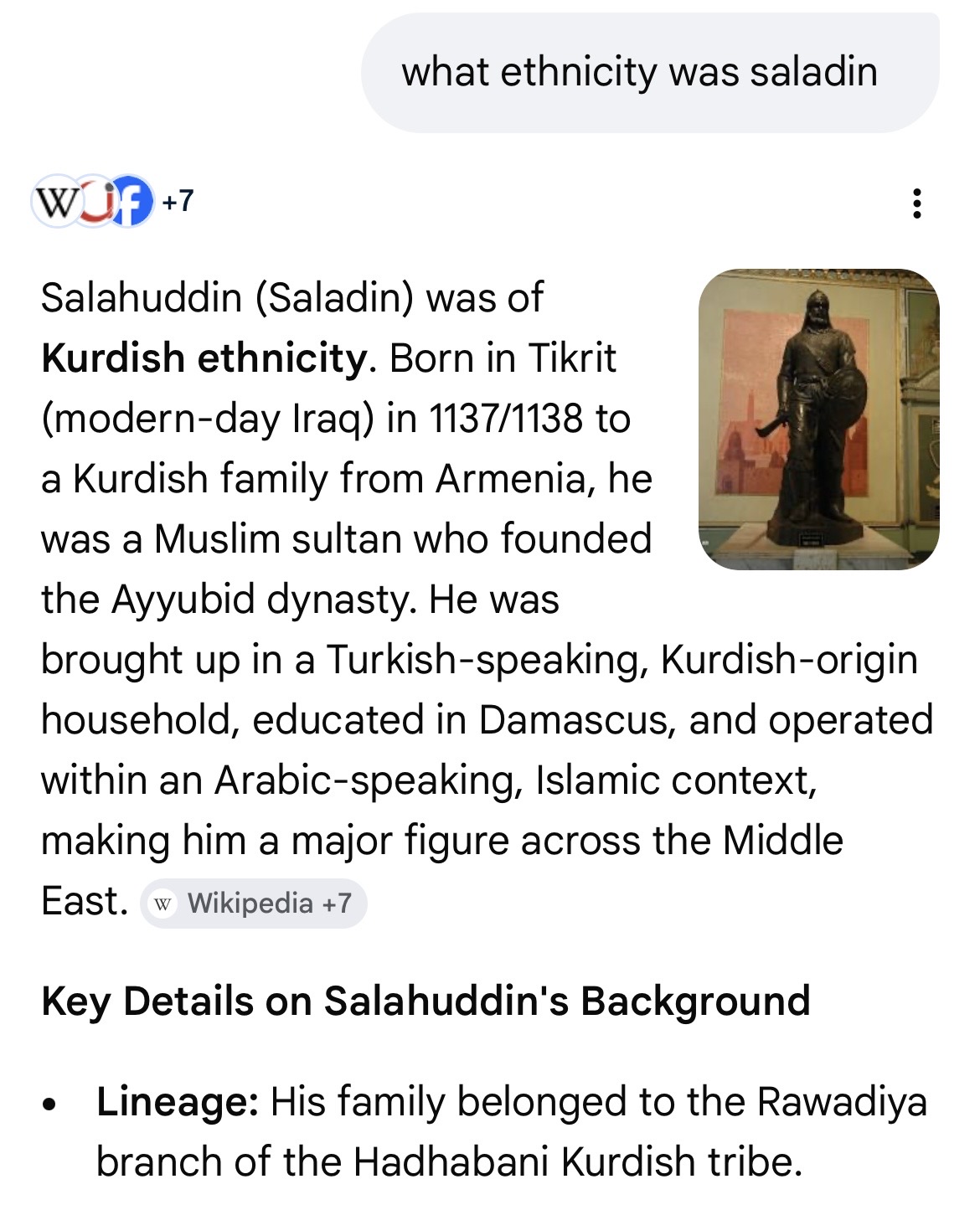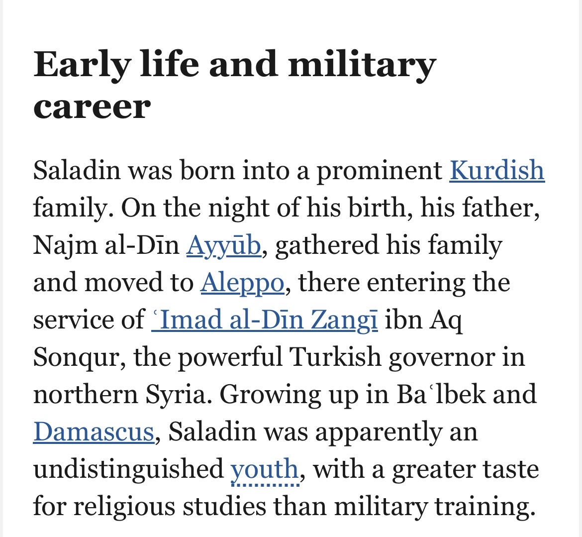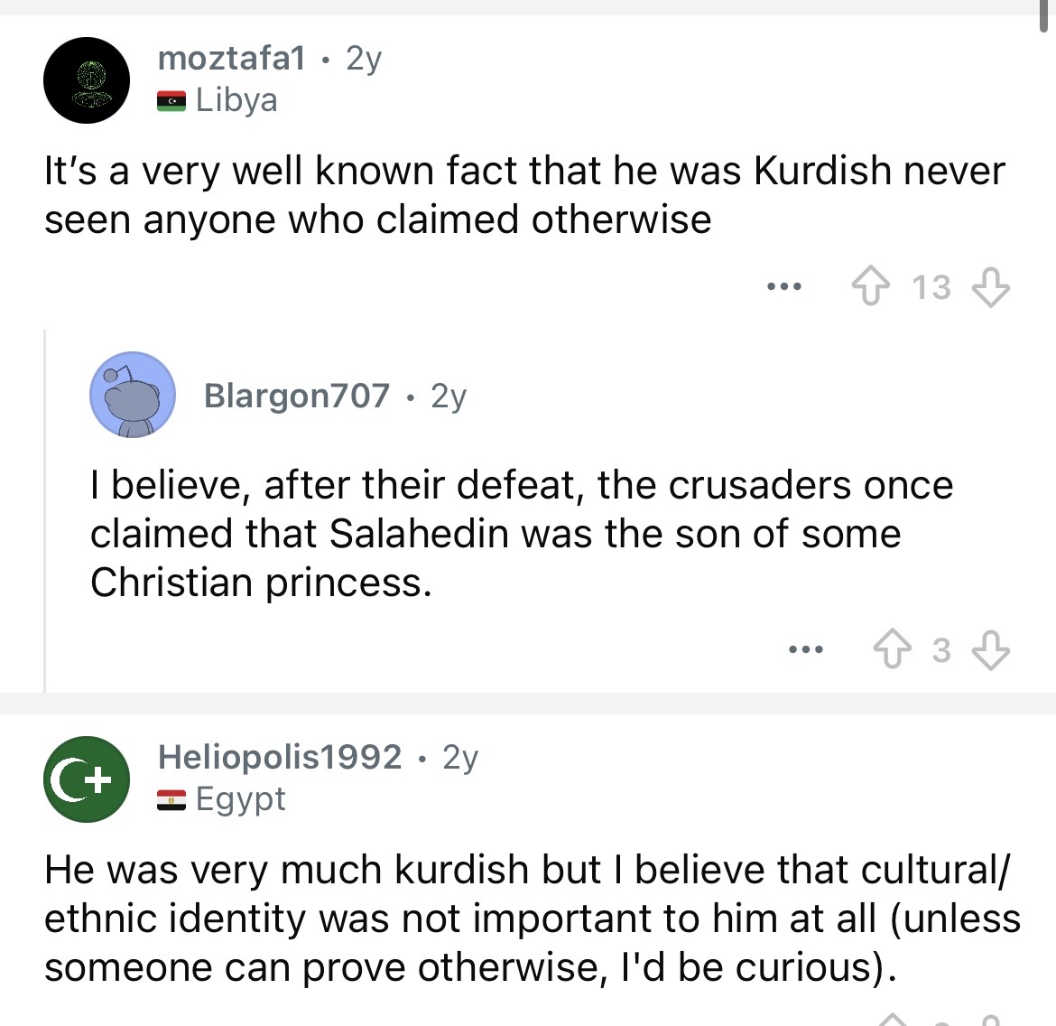 >>220831971She isnt using any whitening filters>>220834539Salahuddin is Arab, Ayyubids are Arabs they just lived with Kurds and had a bit of intermarriage and adopted culture, current Ayyubid descendants are Arabs.Fun fact Salahuddin and Saddam are both from Tikrit in north Iraq