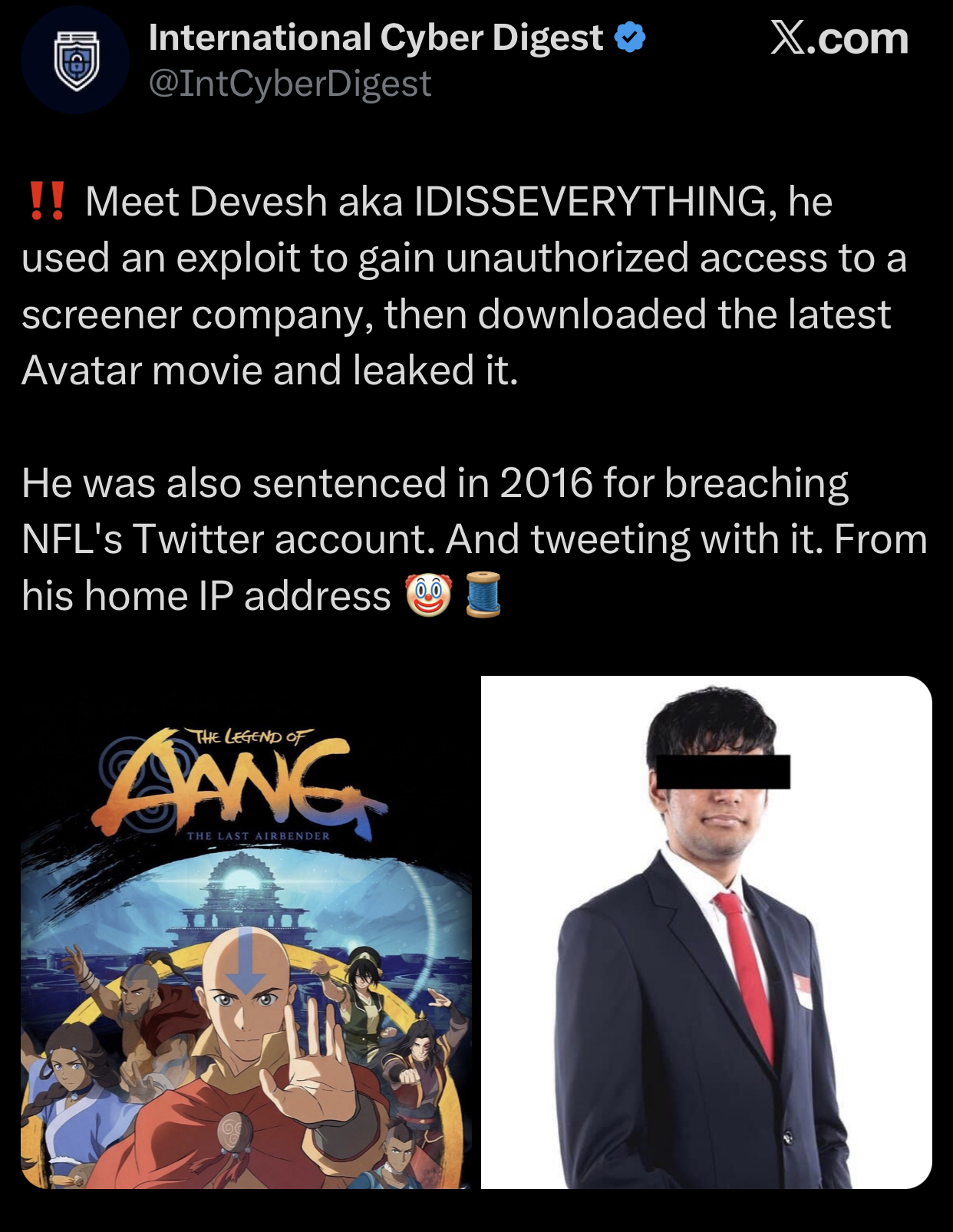 >>220855947they're saying he's from Singapore. he could be extradited to US, depending on whether guessing a password to Paramount's backend to leak a kids' movie online constitutes unlawfully obtained goodsthe password that gave him access was "avatar7" btw