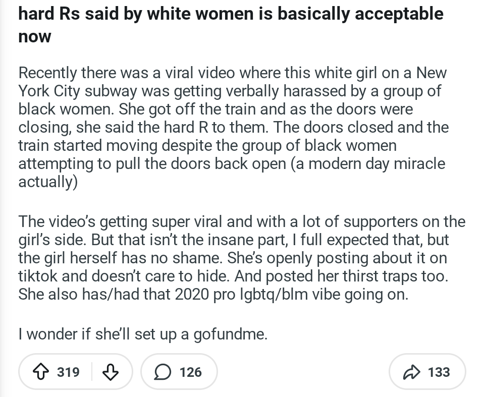 >>220851485Because white women saying racial slurs is hot