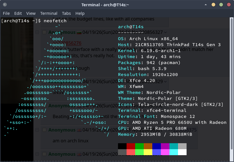 ok enough neofetch posting, time to start posting your arses and legs you linuxsissies