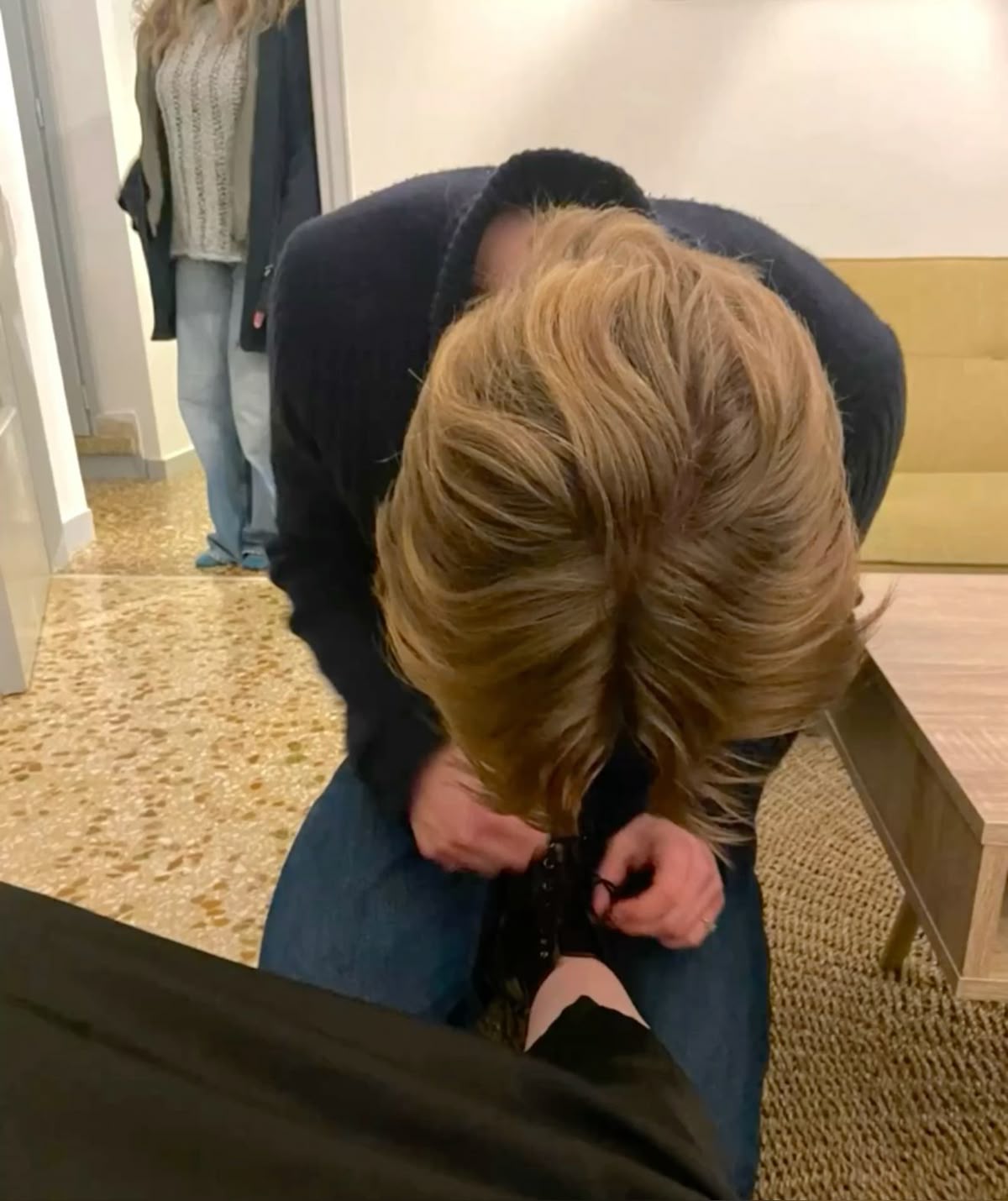 >>220855510I would tie/adjust my girl's footwear and massage her feet not because it's some sort of submission but because I have a foot fetish and it makes me horny to do those things.