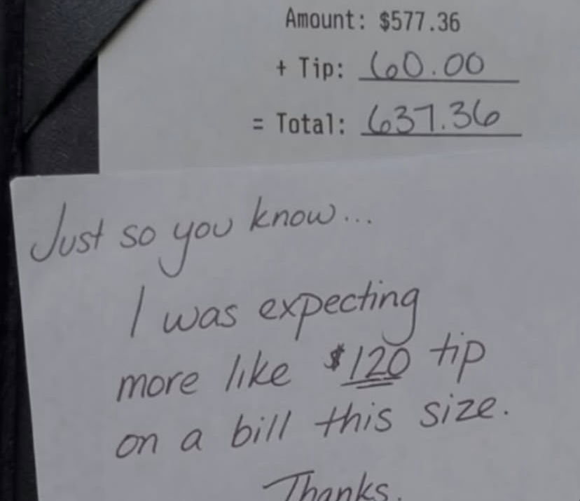 >bait image posted againthe tip is added after the fact, you write it down and then leave, this never happened