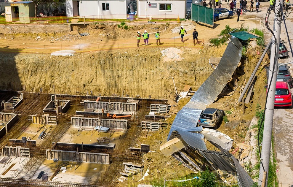 >telecoms company digs for optic fiber in selanik paokland>they cut a water main>water flows for hours>nearby they build some new uglyness and they have dug the ground>the ground around the digsite goes muddy from the water and it collapses, taking cars with itaxxaxaxaxa giouropian giounion kantri we are!