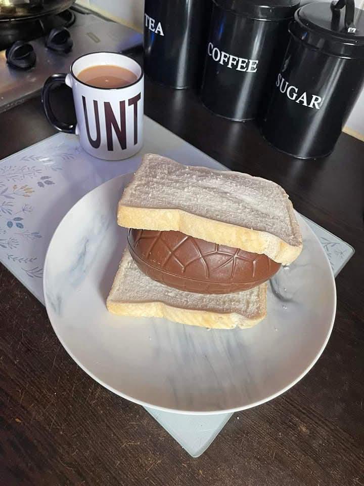 this image reminds me I wanted to try and mashed up creme egg in a toasted hot cross bun