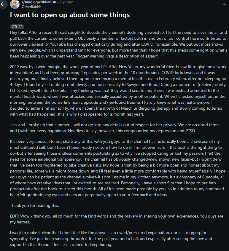 >>220888590>>220888569I remember many old Markiplier videos featured this creature in the thumbnail.Anyway I don't watch videoessay drama stuff since Dev lost his mind. It feels good frankly.