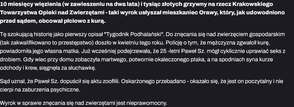 >>220922323może matka to sama zoofilka i jebie koguty a synek zaczął grozić te wyjawi