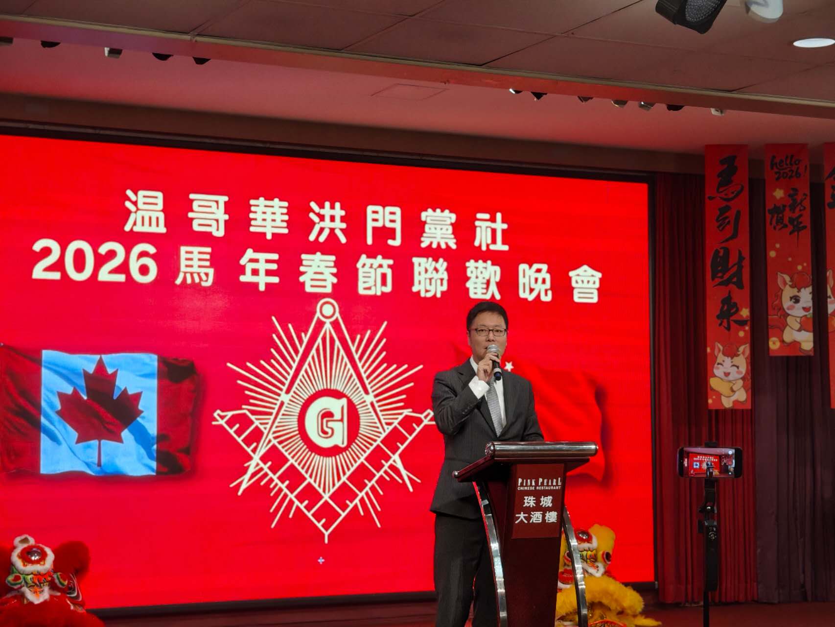 >On March 22, Acting Consul General Zeng Zhi was invited to attend the Spring Banquet of the Chinese Freemasons Vancouver Branch. The event was attended by Vancouver Mayor Ken Sim, City Councillor Lenny Zhou, Chair of Chinese Freemasons National Headquarters of Canada,President of Dart Coon Club Headquaters of Canada,as well as representatives from Chinese Freemasons branchesacross Canada.>Acting Consul General Zeng Zhi remarked the longstanding efforts of the Chinese Freemasons in uniting and serving local Chinese communities and fostering friendly people-to-people ties between China and Canada. He expressed appreciation for theirsupport of the democratic revolution led by Dr. Sun Yat-sen, their contribution to the economic development and nation-building ofChina, and their unequivocal stance against separatist activities in support of national reunification. Acting Consul General Zeng noted that the recently concluded NPC and CPPCC annual sessions had drawn a grand blueprint for the country’s development, and that China-Canada relations had opened a new chapter under the guidance of the leaders of the two countries. He expressed the hope that the Chinese Freemasons would continue to serve as a bridge, working with unity and innovation to make even greater contributions to the sound development of China-Canada relations.