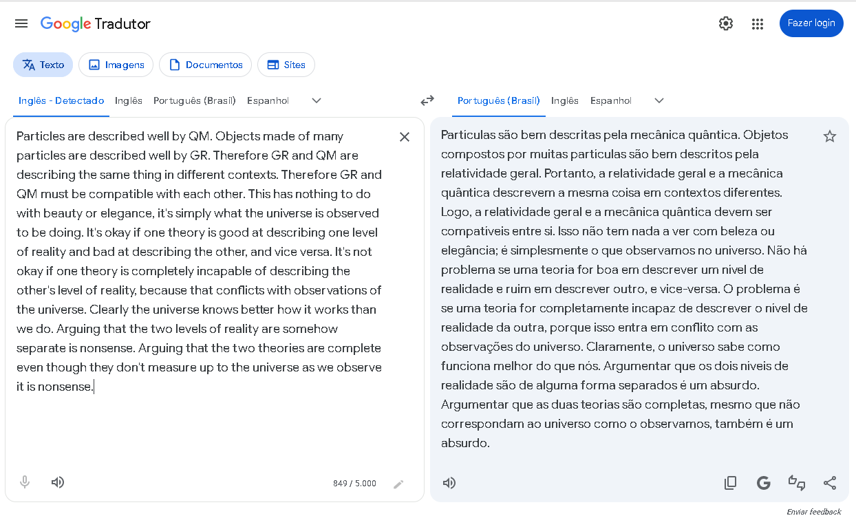 >>220933064Particles are described well by QM. Objects made of many particles are described well by GR. Therefore GR and QM are describing the same thing in different contexts. Therefore GR and QM must be compatible with each other. This has nothing to do with beauty or elegance, it's simply what the universe is observed to be doing. It's okay if one theory is good at describing one level of reality and bad at describing the other, and vice versa. It's not okay if one theory is completely incapable of describing the other's level of reality, because that conflicts with observations of the universe. Clearly the universe knows better how it works than we do. Arguing that the two levels of reality are somehow separate is nonsense. Arguing that the two theories are complete even though they don't measure up to the universe as we observe it is nonsense.