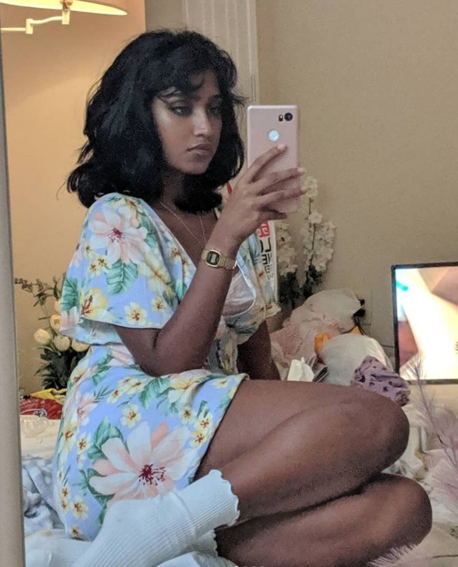 brown girl in a floral dress edish