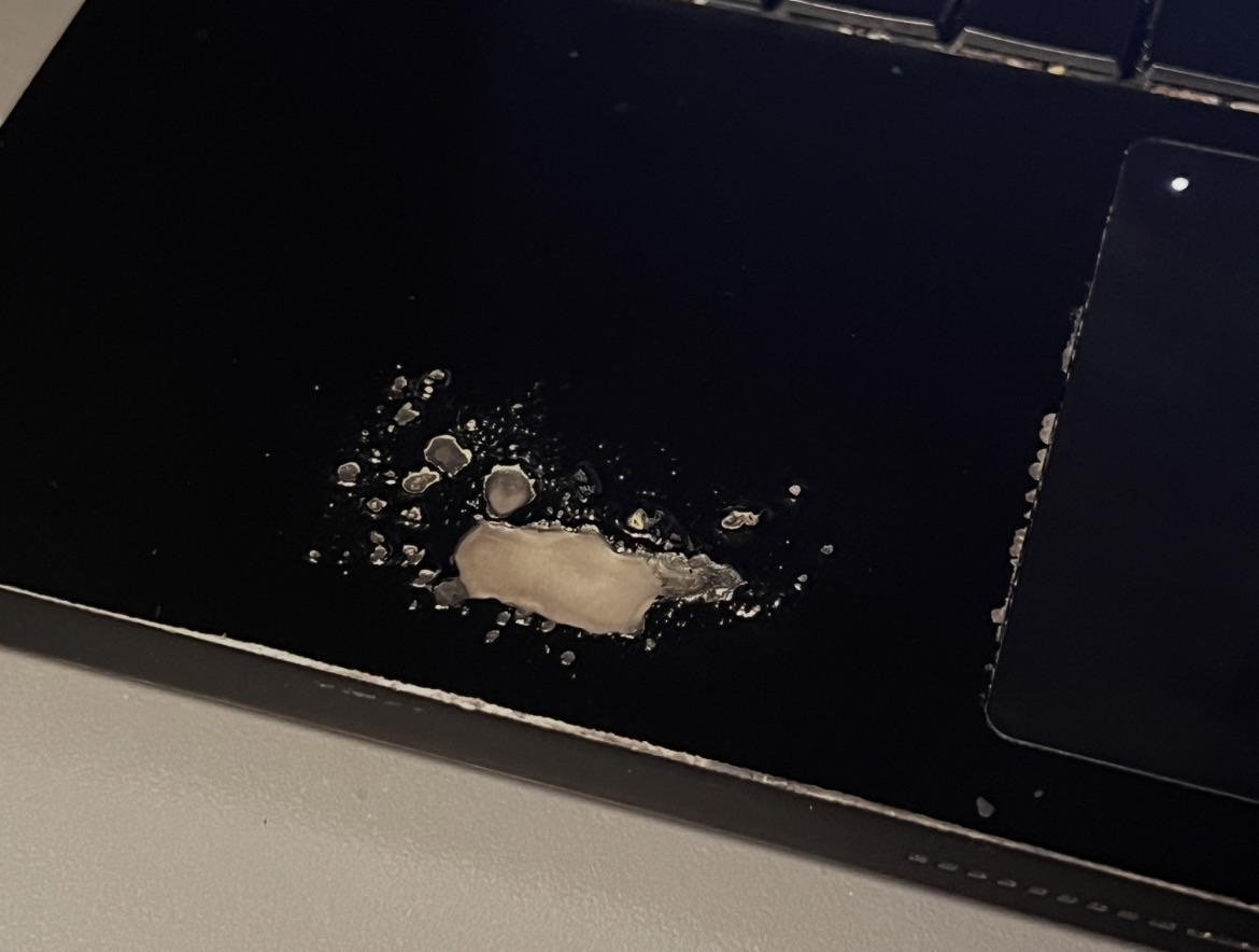 my acidic sweat from my left hand is starting to burn a hole through my laptop, its gone through the paint and is starting to deform the metal pretty sure in a year or 2 therell be a hole straight through it