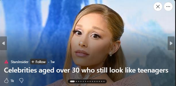 She only looks young because she’s petite, exaggerates her eyes, lips, and hair to a cartoonish degree, wears tons of makeup, and is borderline anorexic.Ariana was in her prime a decade ago and now she looks terrible