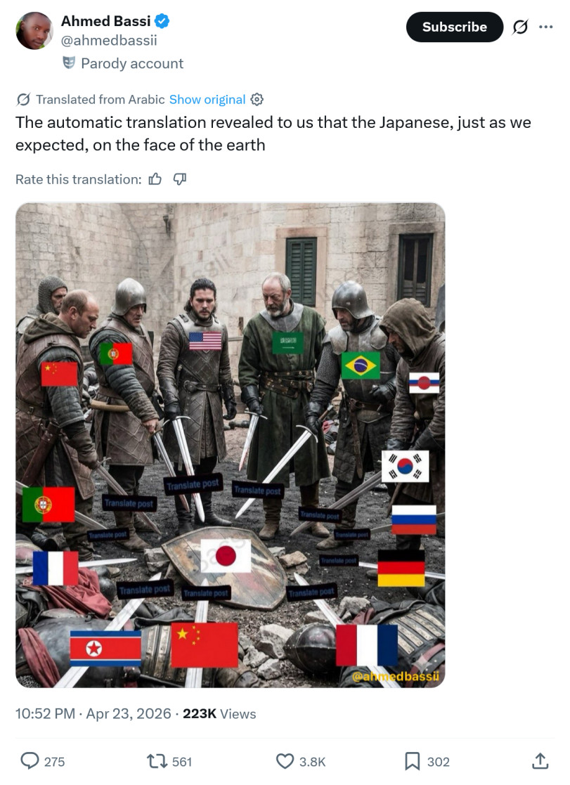 >>220972186>xitter post>"parody account">blue checkmark>translated from Arabic>black profile pic