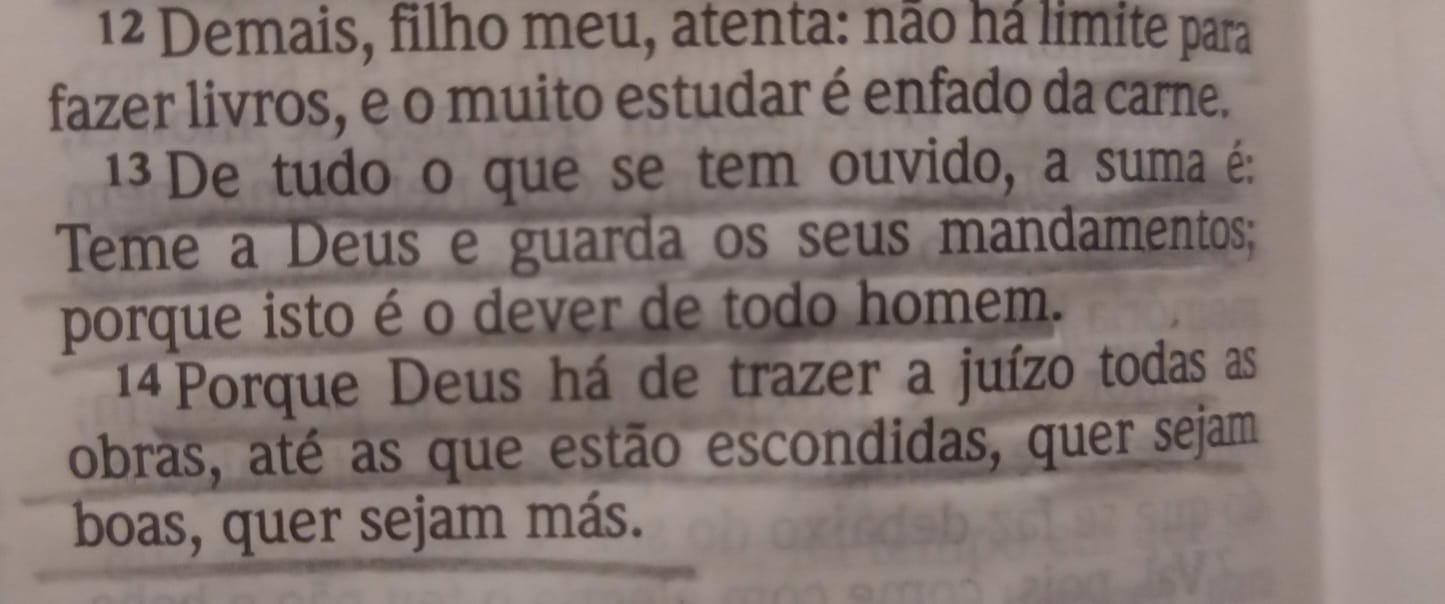 Eclesiastes terminadoele fala sobre como o sábio será esquecido e como o perverso terá enterro digno e será pranteado; mas no fim cada um terá o seu julgamento.adquirir a sabedoria é enfado, afadigar-se debaixo do sol e erigir obras com as mãos é vaidade e correr atrás do vento. mas ainda assim a sabedoria é melhor que a estultícia, e o preguiçoso que não trabalha come a própria carne, ele é o verme sarcófago de si próprio.