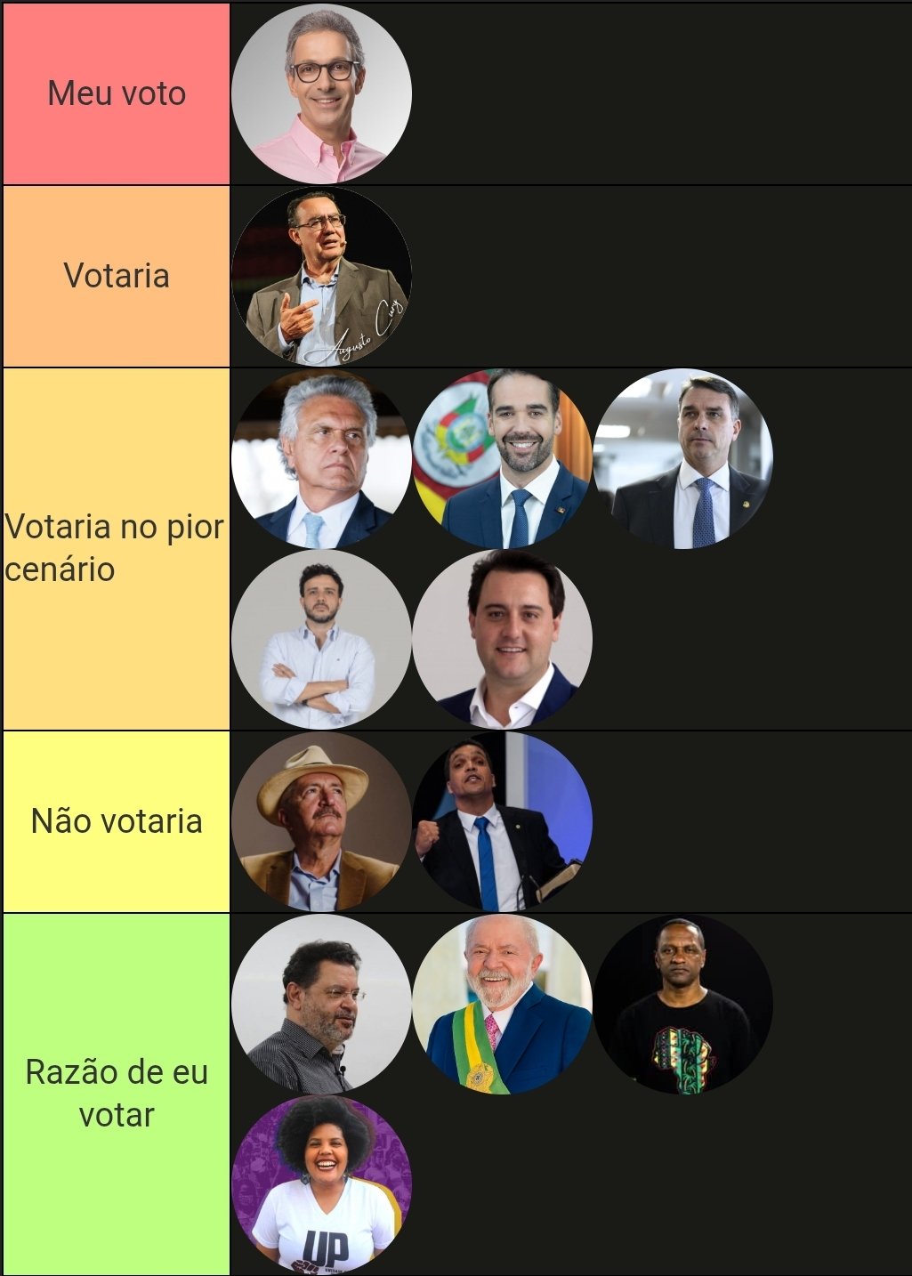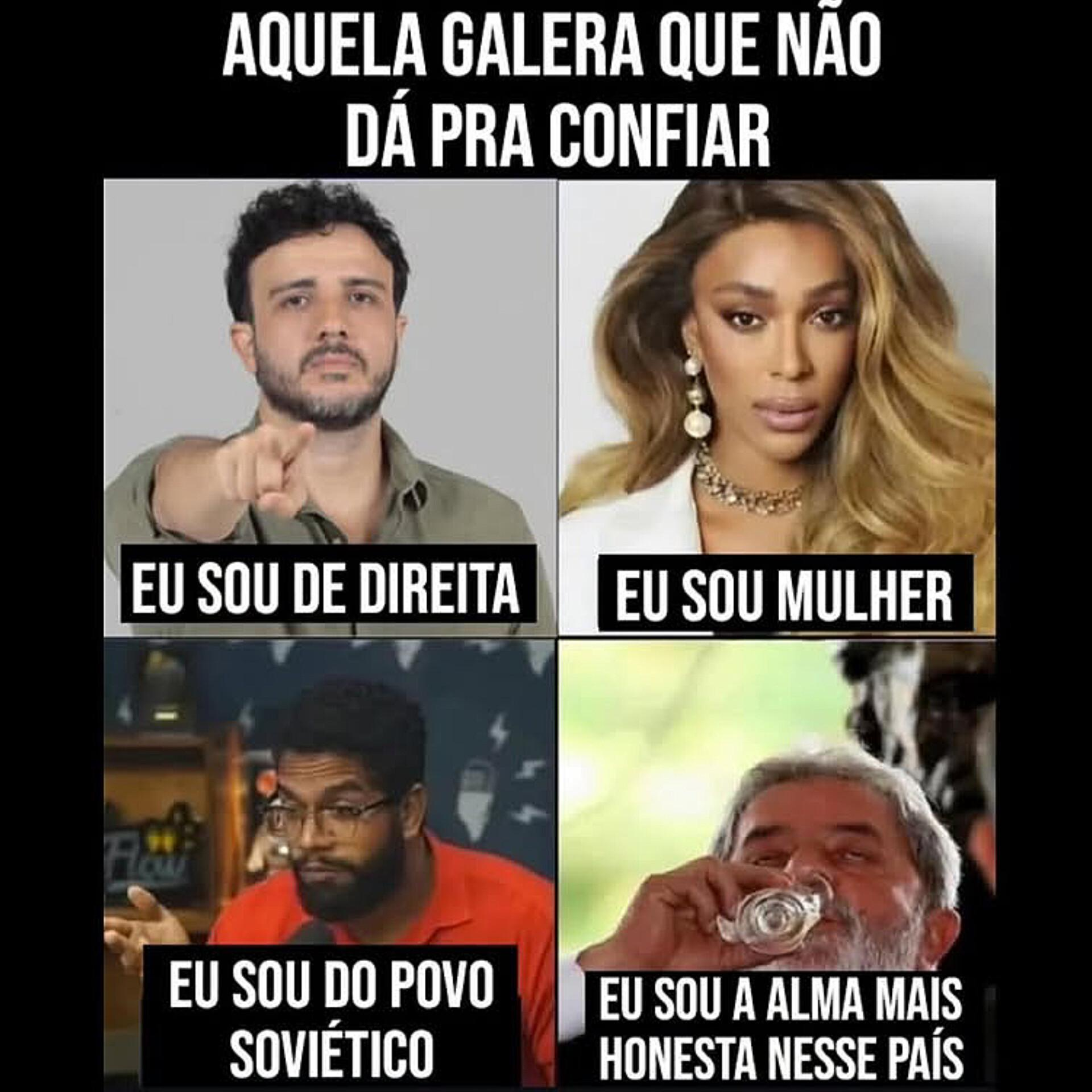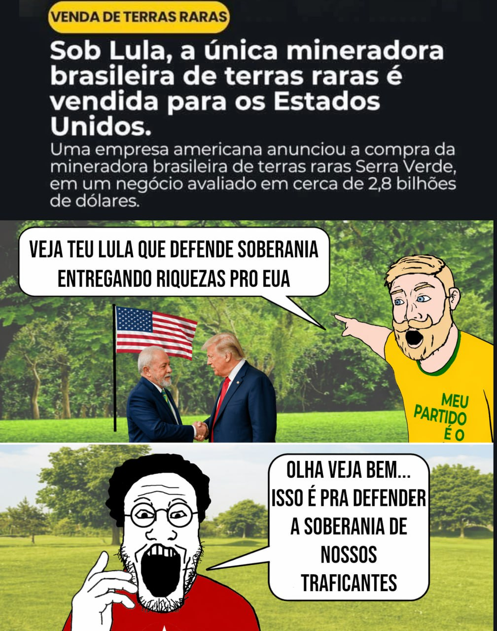 voces so falam de politica.literalmente alguem com dinheiro decide sua vida inteira e vc se preocupa com esse teatrinho pra ingles ver e acha que seu voto muda algo além da skin do fantoche do senhor feudal.vao viver enquanto ha tempo....