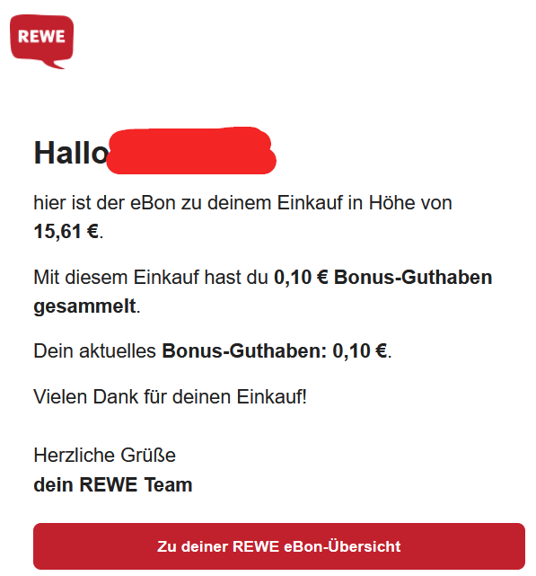 hab heute eiskalt so Rewe äpp installiert undhab jetztein paar Cent Guthaben nach dem letzten Einkauf bekommben + elektronischer bong