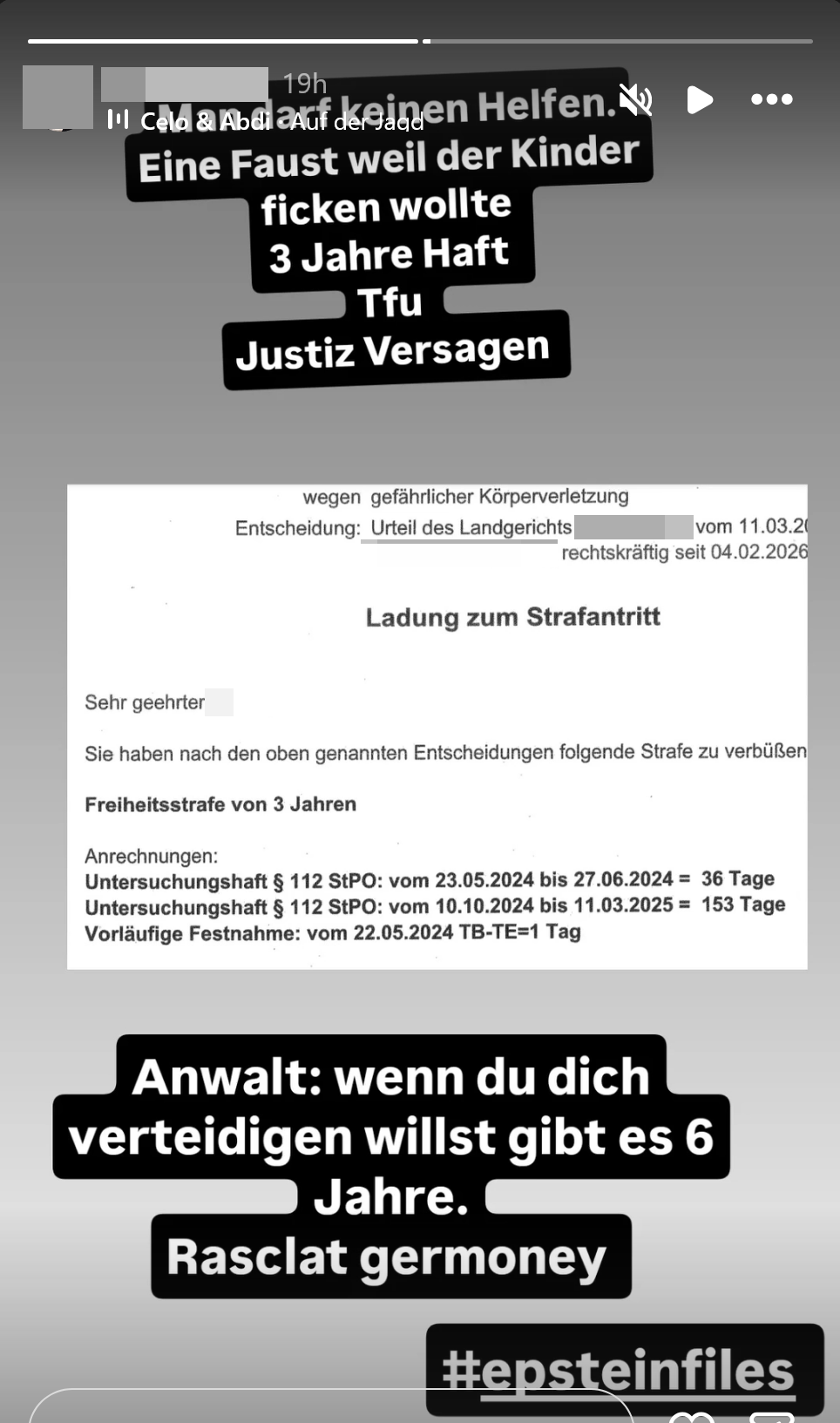 so ein total bekloppter, mit dem ich von der 5. bis zur 10. klasse aufer realschule war, muss in den knastder hat nach der schule sowas von den verstand verlorenhat auch mit irgendeiner nutte ungeplant ein kind bekommen