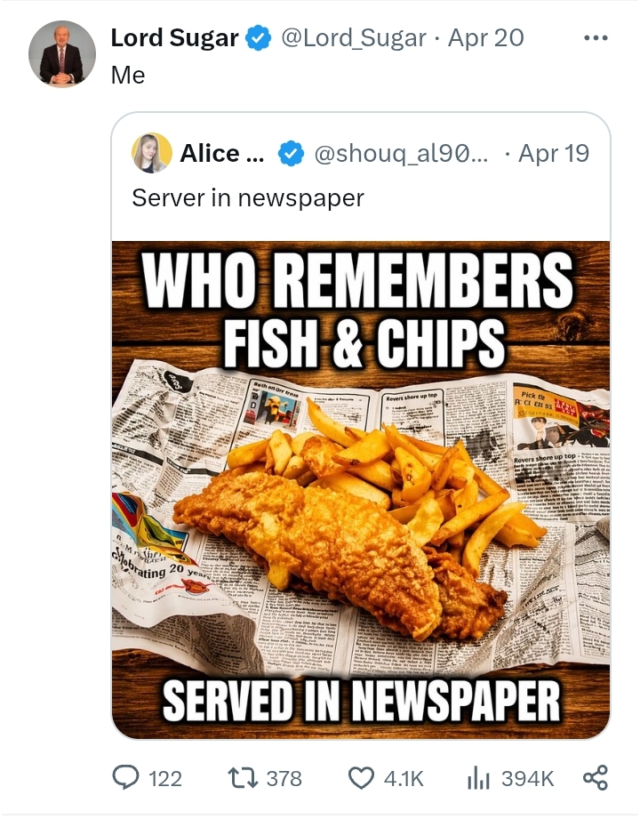 >>221001663https://x.com/Lord_Sugar/status/2047619761077407995 something about this one has me giggling