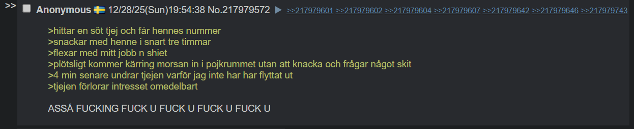 Fuck you du brevade röv ändå