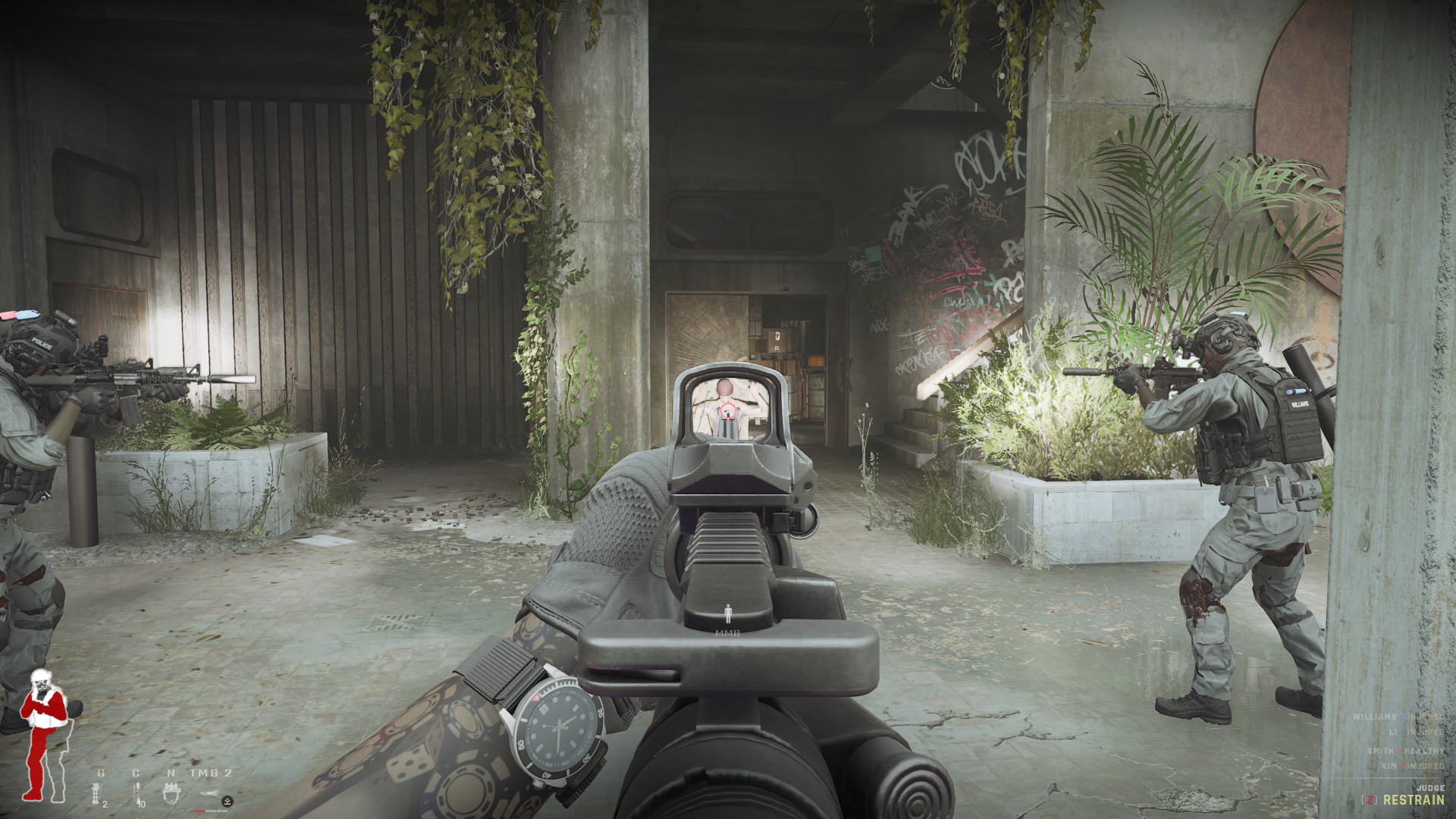 >>221008856Litt som de gamle Regnbue Seks ja. Rettere sagt 1, 2 og 3. Men egentlig så er det mer en klone av de gamle spillene SWAT 3 og 4. Du skal prøve å arreste skurkene og ikke drepe dem. Men denne banen er vanskelig, er over 20 gærninger her og alle skyter på meg.