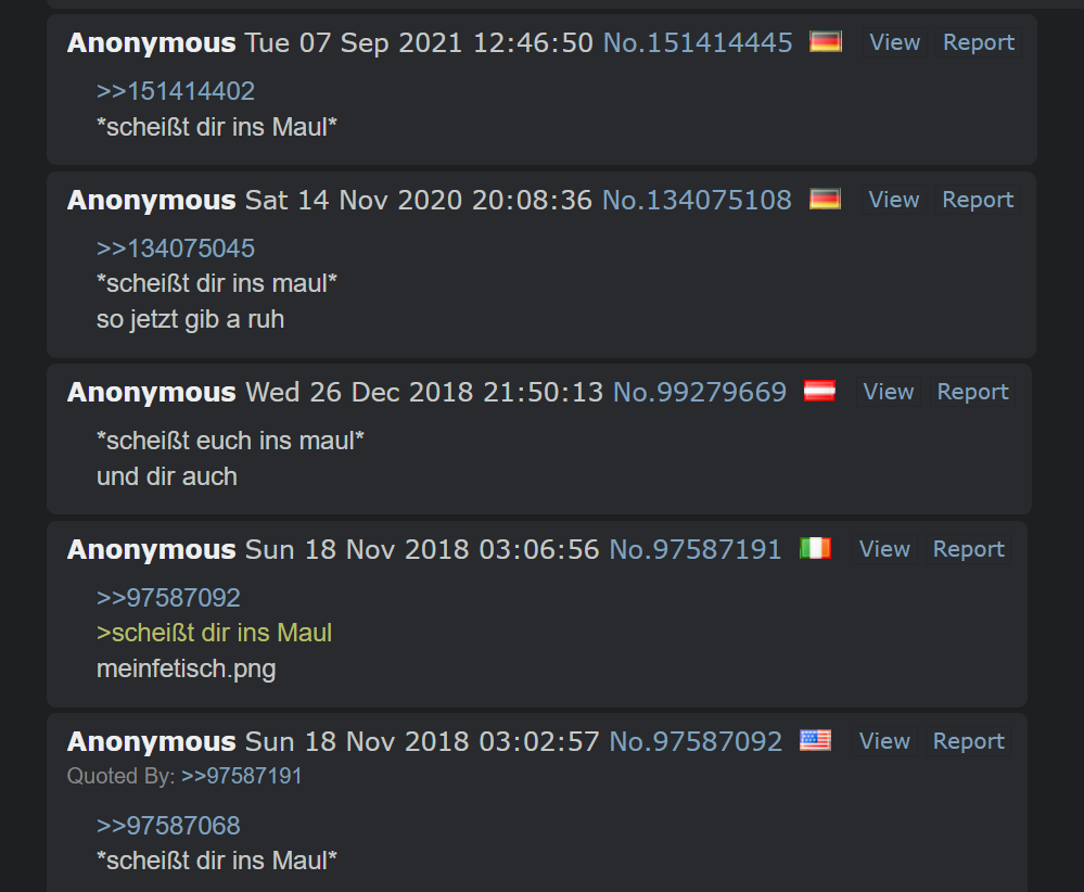 >>221017289Ich verstehe dass du dich verletzt fühlst. Aber deine Kinderschändung auf andere zu projizieren ist nicht der Weg. Das schadet dich nur und macht dich irgendwann ganz traurig. Ich meine schau dir deinen Spam an. Du antwortest zwar auf Beiträge, gibst ihnen ein (Du), aber du gehst nie auf die Inhalte ein. Du tust mir voll leid!