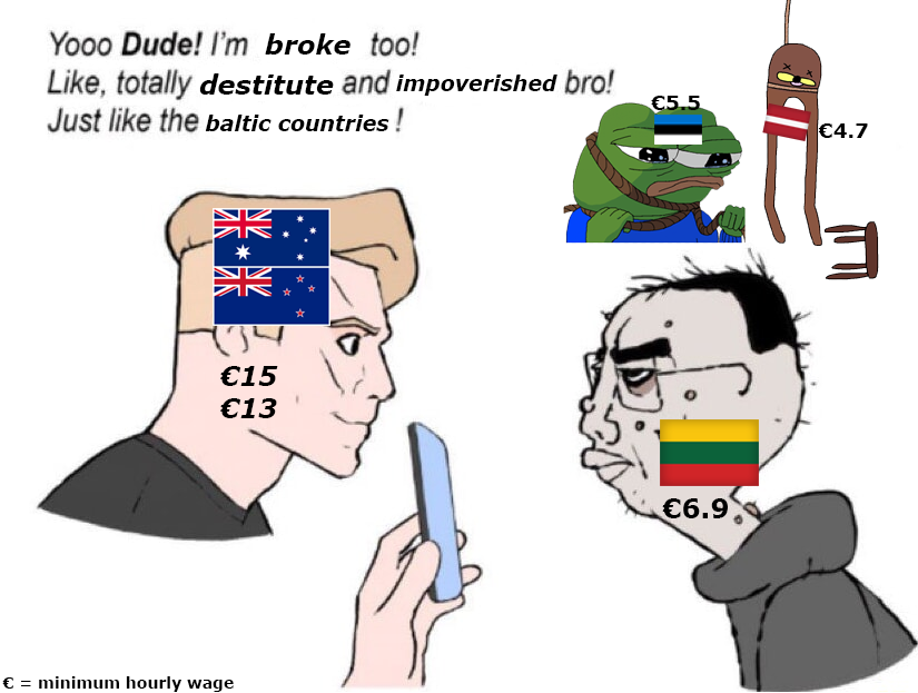 >>221035672>Minimum wage can afford [rent]I refuse to believe that. Minimum wage won't afford you rent + utilities + groceries here if you live alone and we don't have this "cost of living crisis" that westoids keep crying about. That's just how life goes, to live alone in Riga you need like a 70th percentile income.
