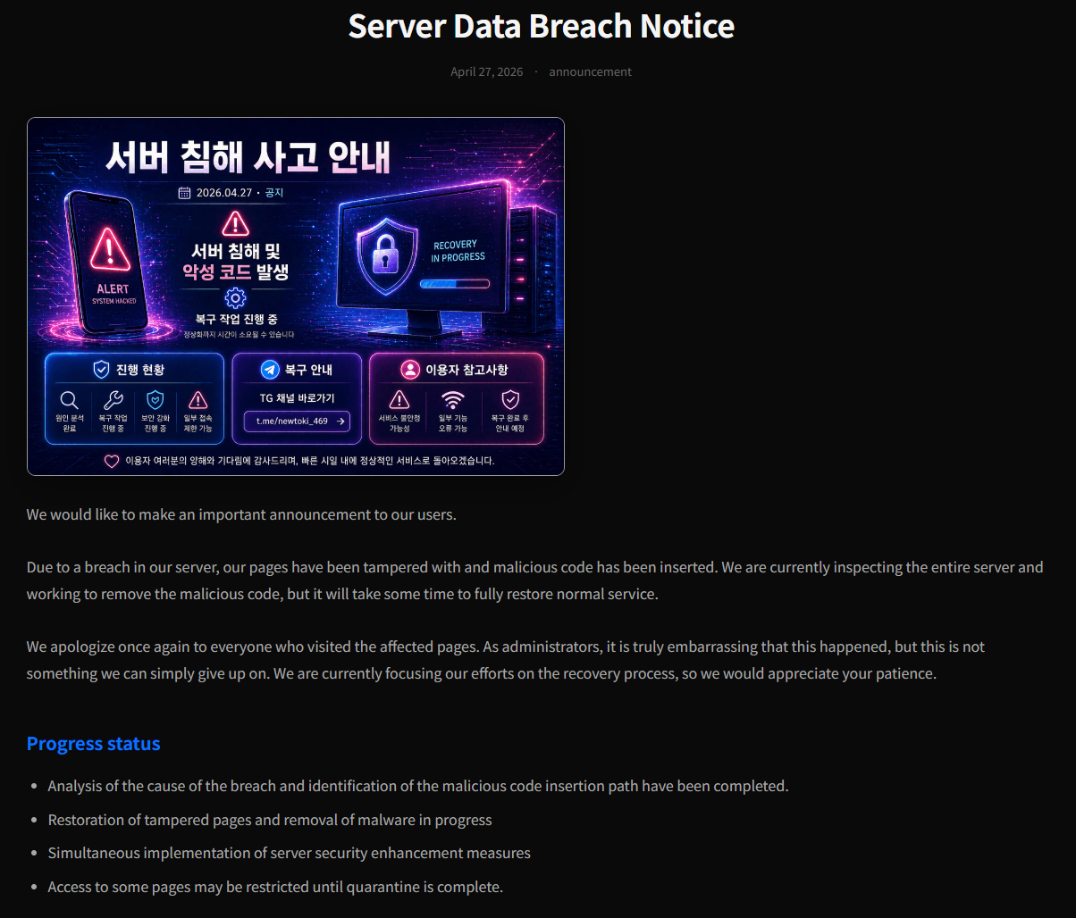 >>221038729Newtoki said it got hacked instead????