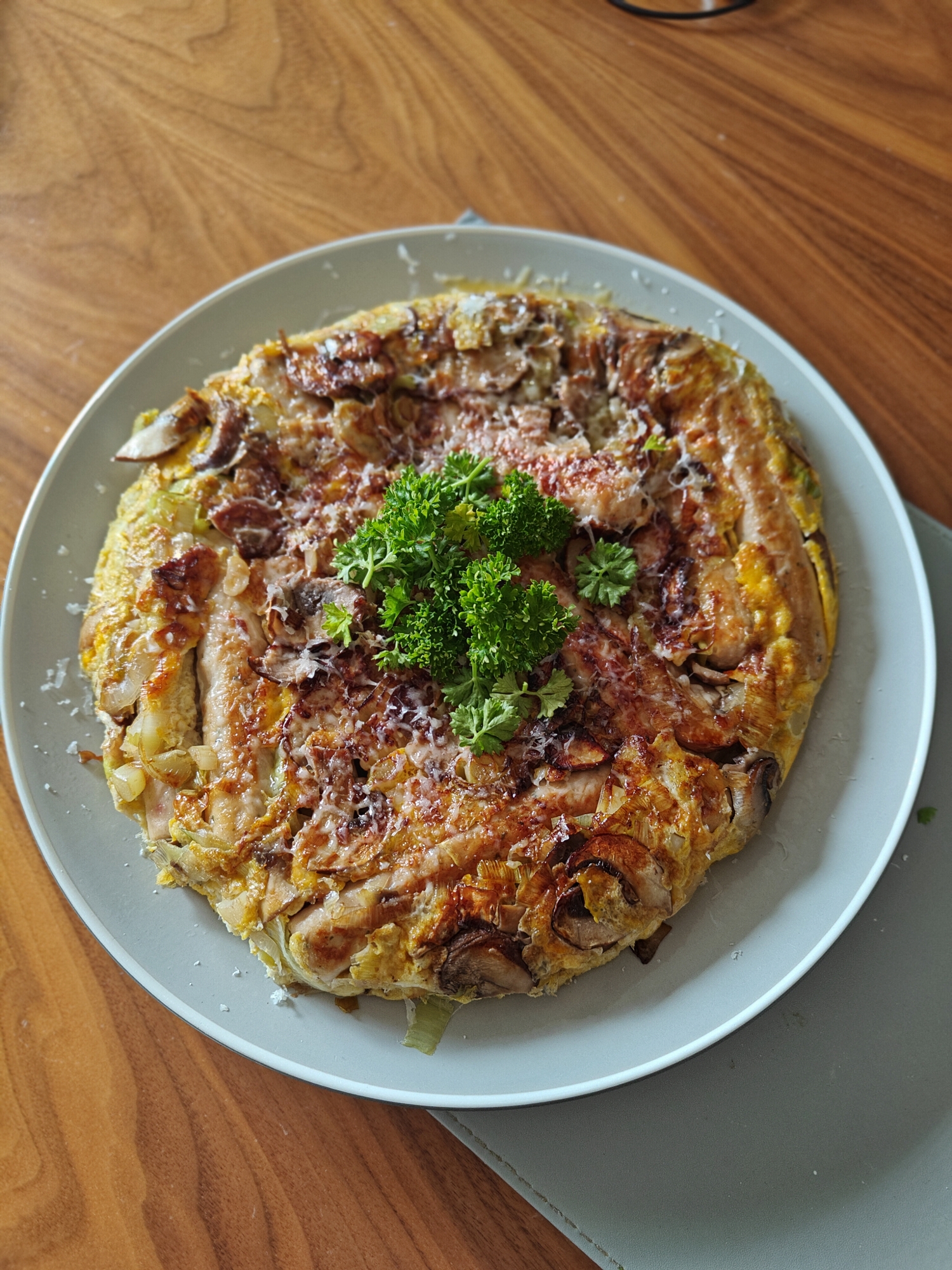 and for my tea I am having sausages and eggs and mushrooms and a leek