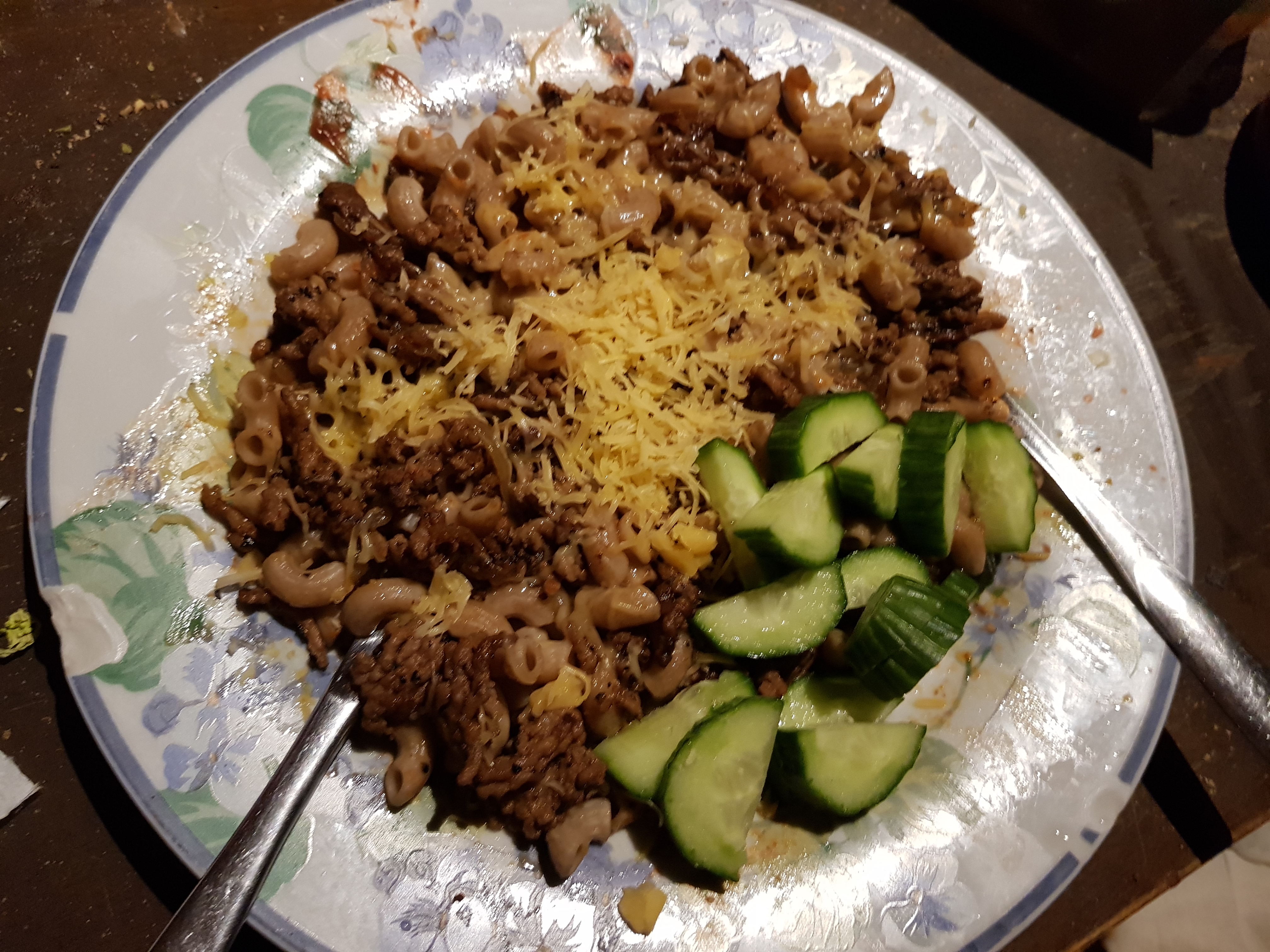 Syön jauhelihaa ja wokkivihanneksia.