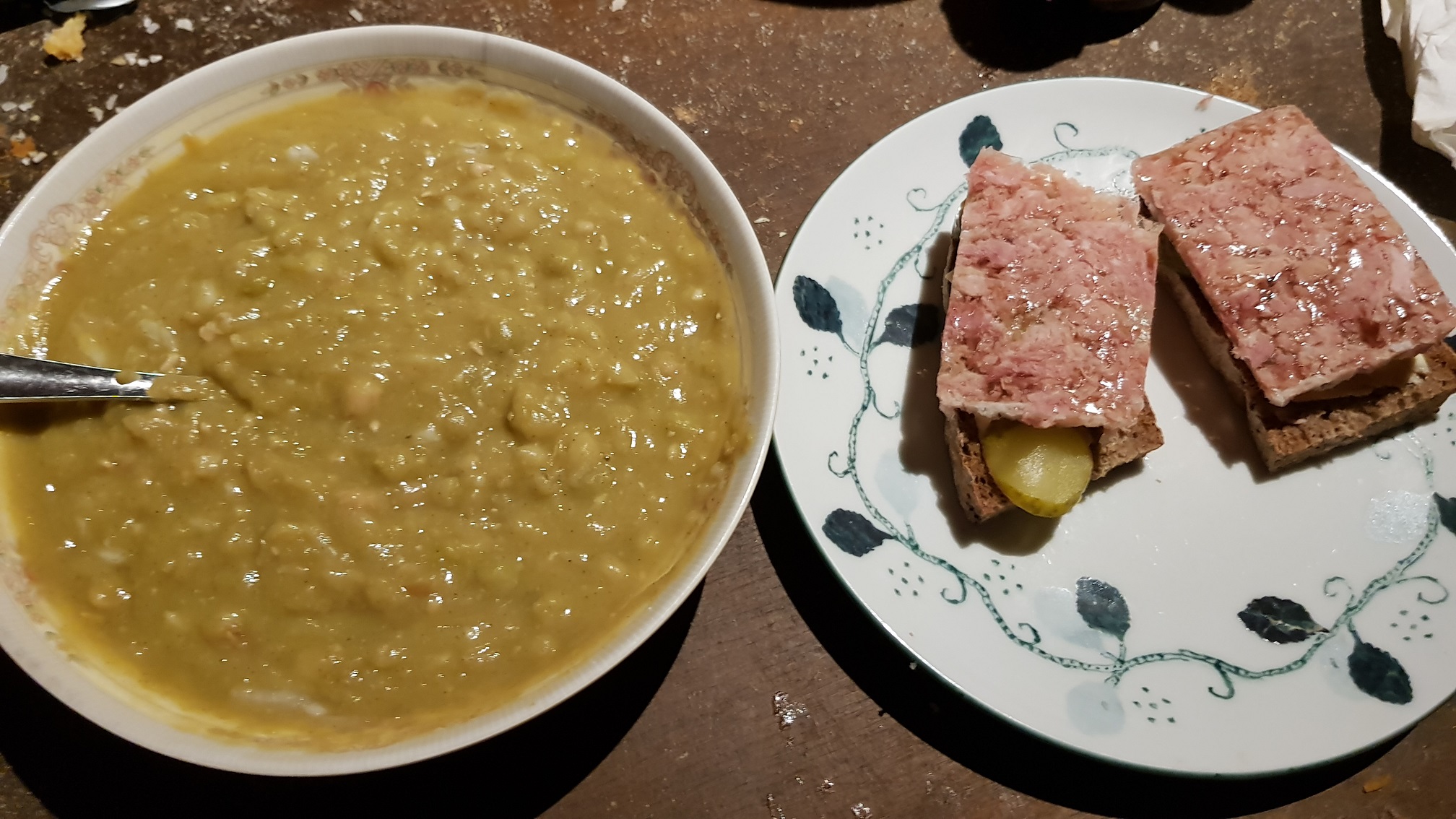 tänään syön jalostajan hernaria ja tuumin että voisko sinne laittaa lihahyytelöä sekaan vai meneekö hukkaan dooshimastaa
