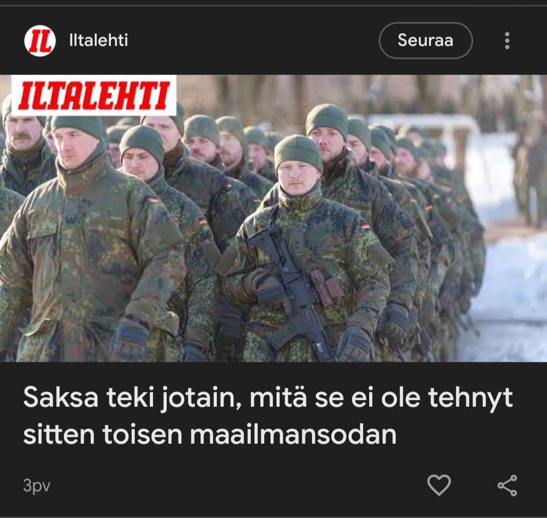 jos suomella olis hyökkäysvoimat niin menisin sinne sota mieheksi mutta valitettavasti meillä on vaan homo puolustusvoimat