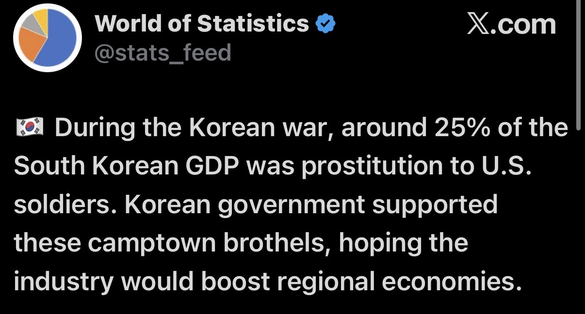 Korea was a war-torn shithole getting carried by massive American aid, gibs, and protection from the North after the war.