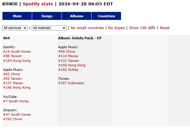 you're so dumb, when was the last time coldplay released a song? you have to compare it with current songs/stats retard, KiiKii song is 5th in Korea as of right now so obviously any country where is not even at least top 50 is non existent