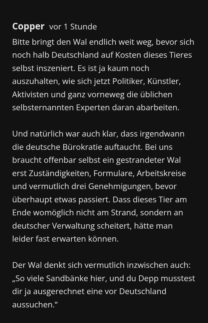 >>221070254das interessiert uns jetzt hier nen Scheißdreck, Thema Nummer 1 ist der Wal, du bist jetzt grad unwichtig