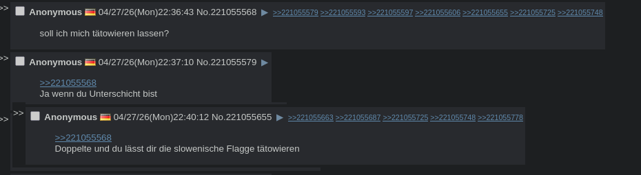 >>221070289Wir müssen das ja sagen, weil der Verfassungsschutz hier lauert.