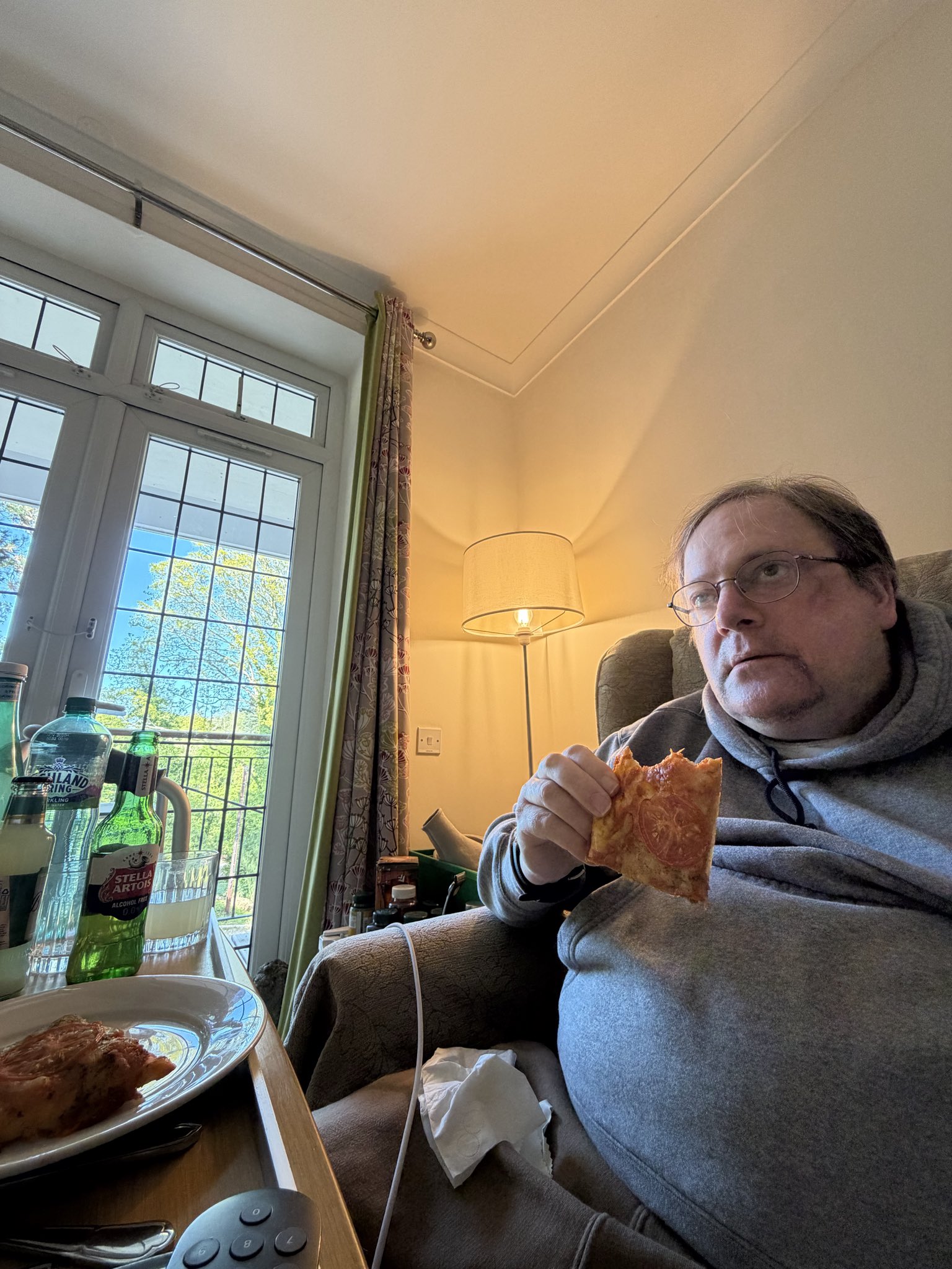 … supper time today wearing my excellent glasses watching live snooker world championships on TNT sports 1 on SkyGo on my phone in home …